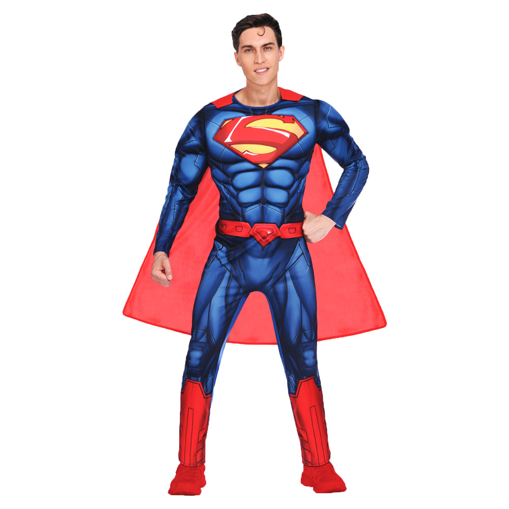 Susa genom luften och rädda dagen precis som hjälten Superman man denna häftiga kostym! Att förvandlas till självaste Stålmannen blir riktigt enkelt med denna snygga Superman dräkt för vuxen. Med vadderade muskler, ett snyggt Superman märke och den obligatoriska manteln blir denna utklädnad en toppenbra maskeraddräkt för alla superhjältar som önskar en klassisk look till nästa maskerad.