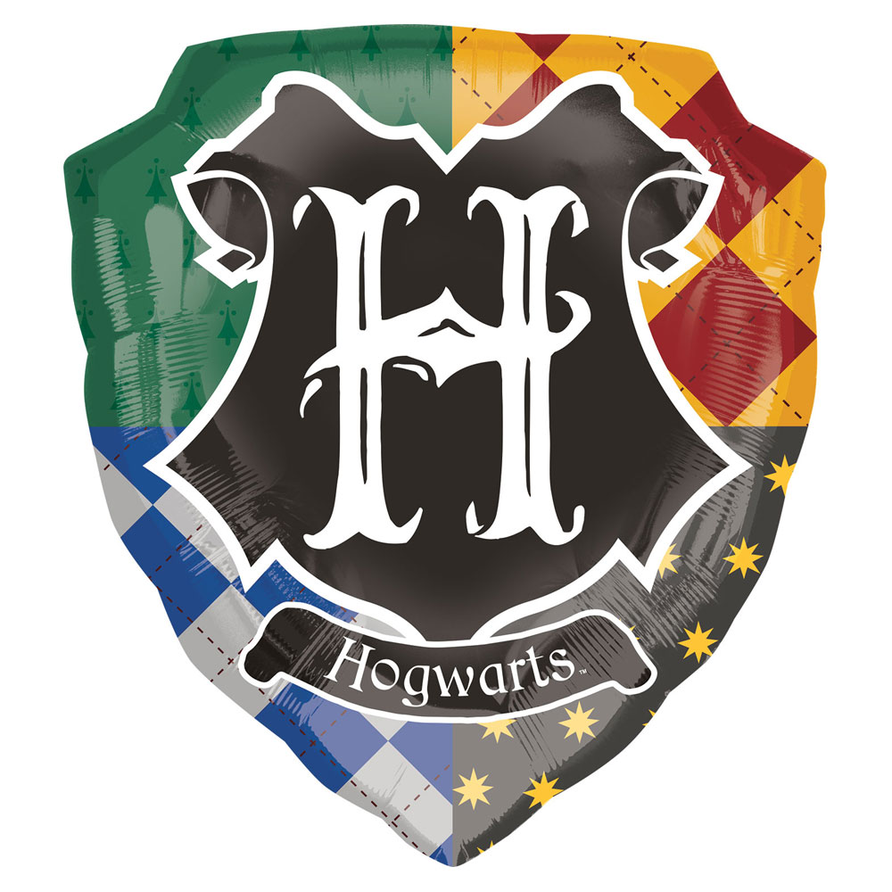 SuperShape Harry Potter Folieballong består av en större folieballong med motiv av loggan "Hogwarts" i mitten av ballongen.