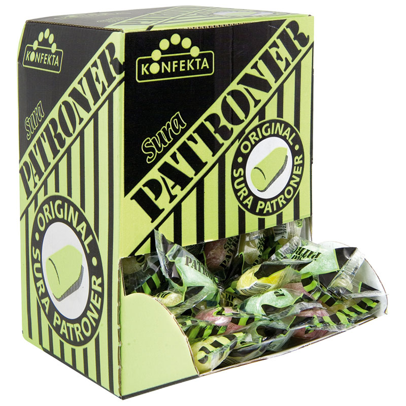 Sura godisar är min absoluta favorit, just dom här sura patron godisarna har jag inte provat, än. För 28 år sen var året 1990 och dessa godisar var riktigt populära, man skulle definitivt kunna säga att dom är ett nostalgiskt godis. Retro godis börjar bli riktigt populärt då folk älskar att drömma sig tillbaka till barndomen.