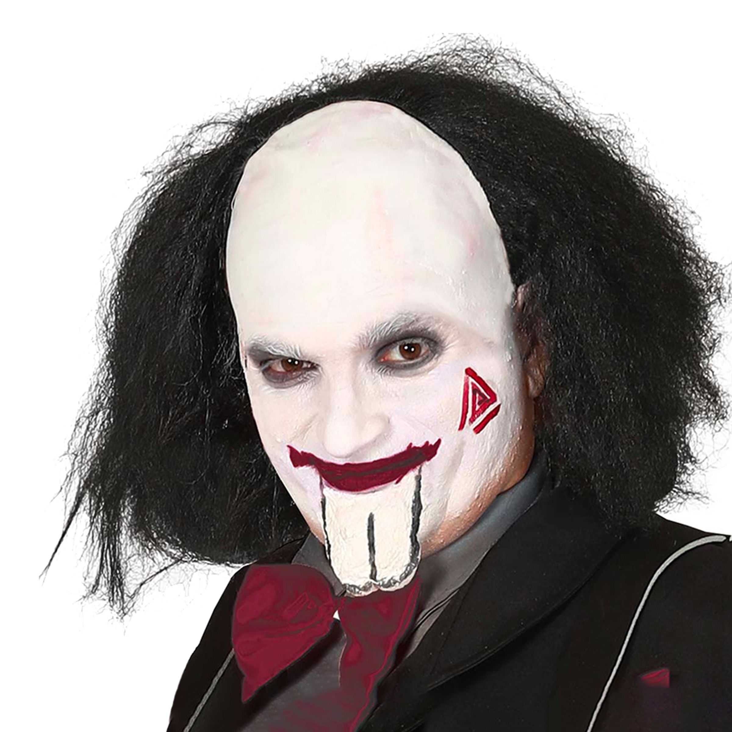 Svart Clownperuk med Vit Flint är en svart peruk med vit flint på toppen. Passar perfekt när du ska klä ut dig till clown eller annan läskig karaktär på halloween. Komplettera gärna med peruknät.