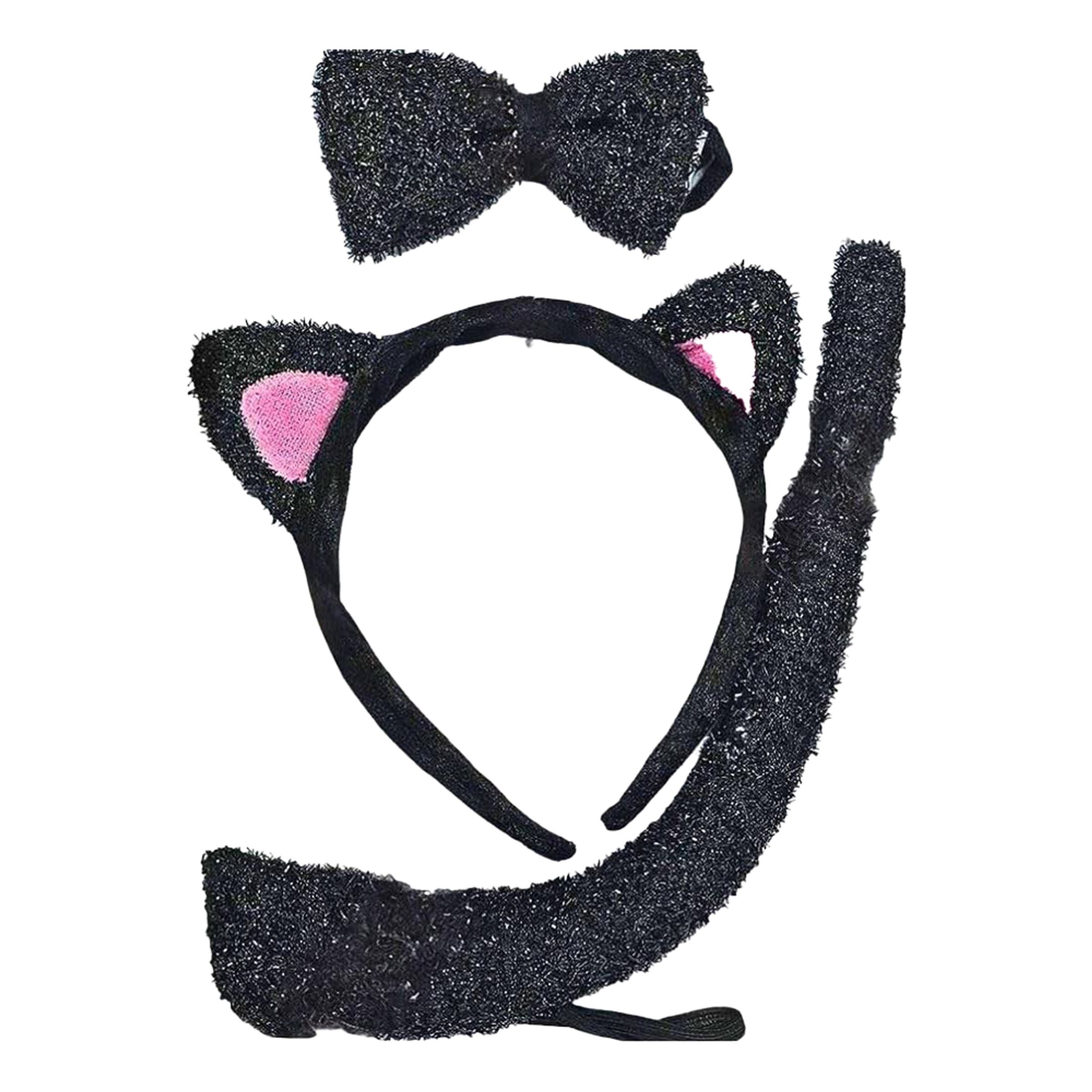 Svart Katt Barn Tillbehörskit innehåller fluga, öron och svans i storleken one size (för barn). Produkterna är tillverkade av polyester och förvandlar snabbt ditt barn till katt med små enkla medel!