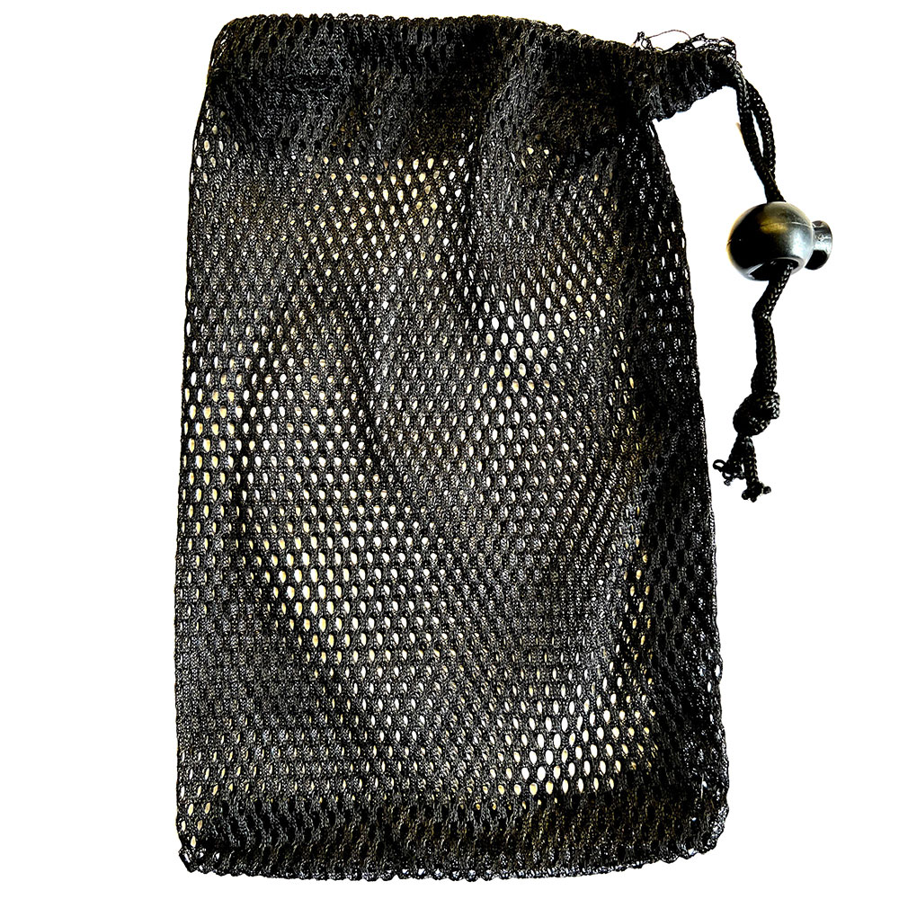 Svart Kulpåse omfattar en svart nätpåse med snöre, tillverkad av polyester.