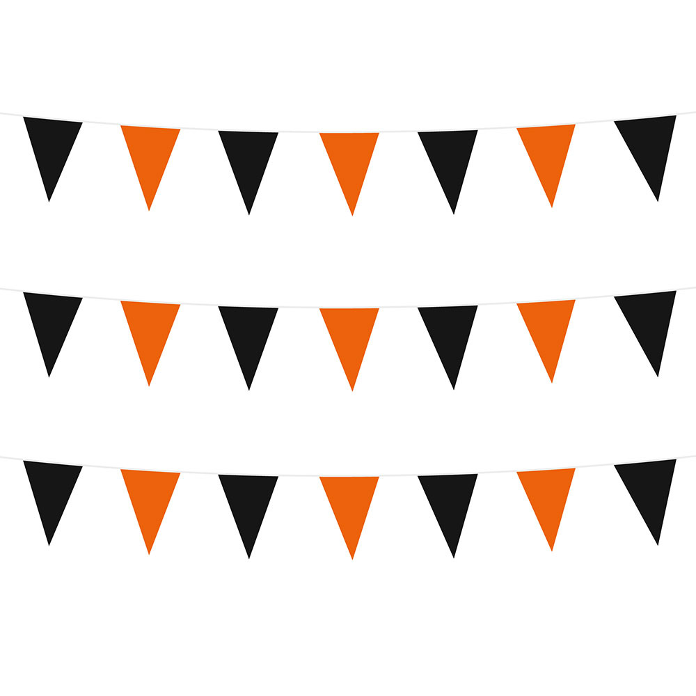 Svart/Orange Flaggirlang Liten omfattar en 3 meter lång girlang med 12 st flaggor i orange och svart. Tillverkad av plastmaterial.