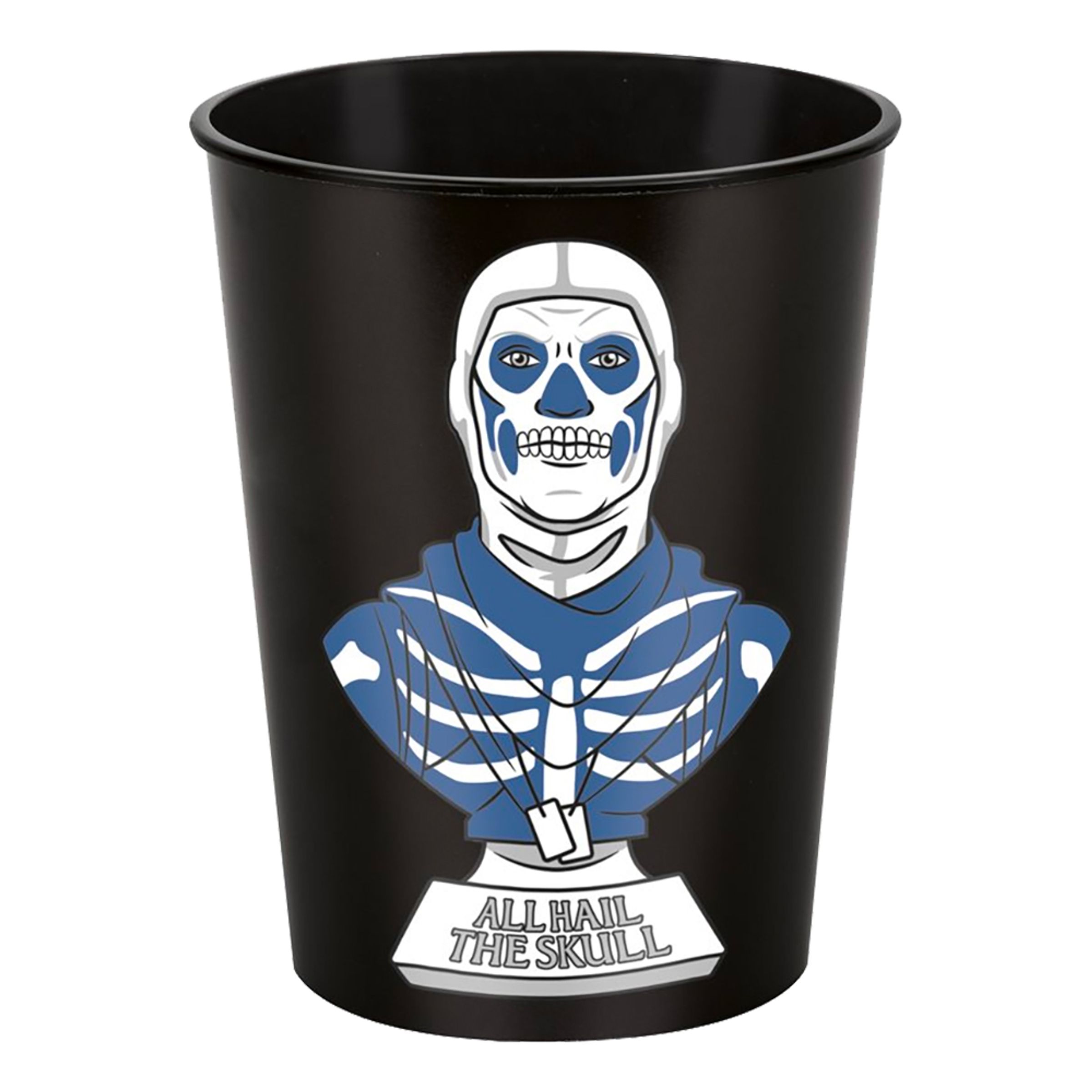 Svart Plastmugg Fortnite är en svart mugg av plast som kommer med motiv i form av Skull Trooper från det populära tv-spelet Fortnite. Muggen bör ej användas i mikrovågsugn. Handdisk rekommenderas.