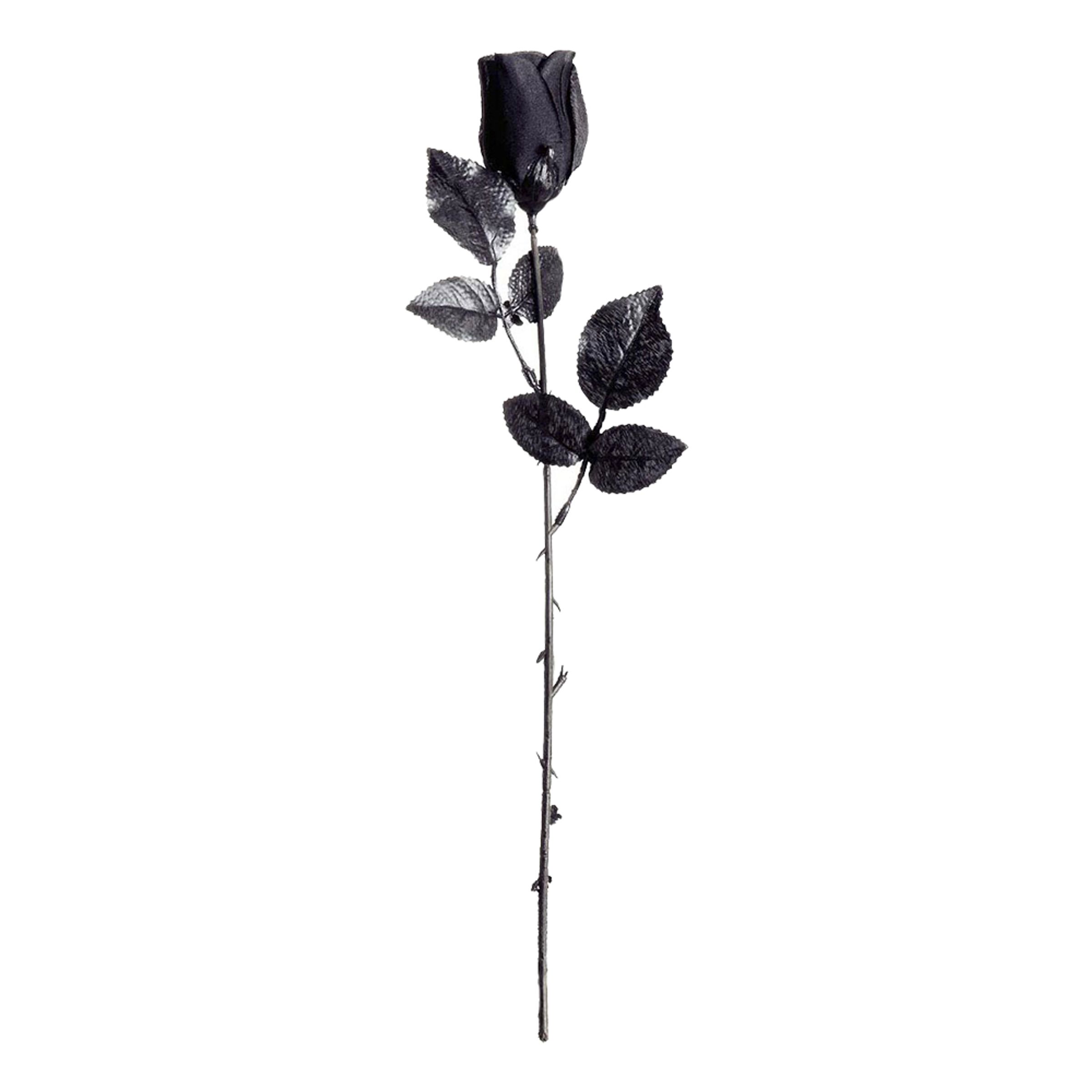 En vacker, helsvart ros som ser verklighetstrogen ut. Perfekt accessoar till din Halloweendräkt eller att dekorera ditt mörka Halloweenhem med. Köp gärna flera rosor för en mer effektfull dekoration!