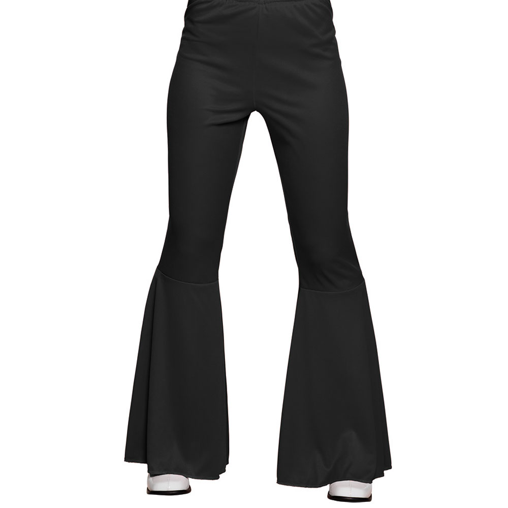 Svarta Hippie Byxor består av ett par svarta stretch byxor som är tighta upptill och vida nedtill. Perfekta byxor för alla hippies. Tillverkad av 100% polyester.