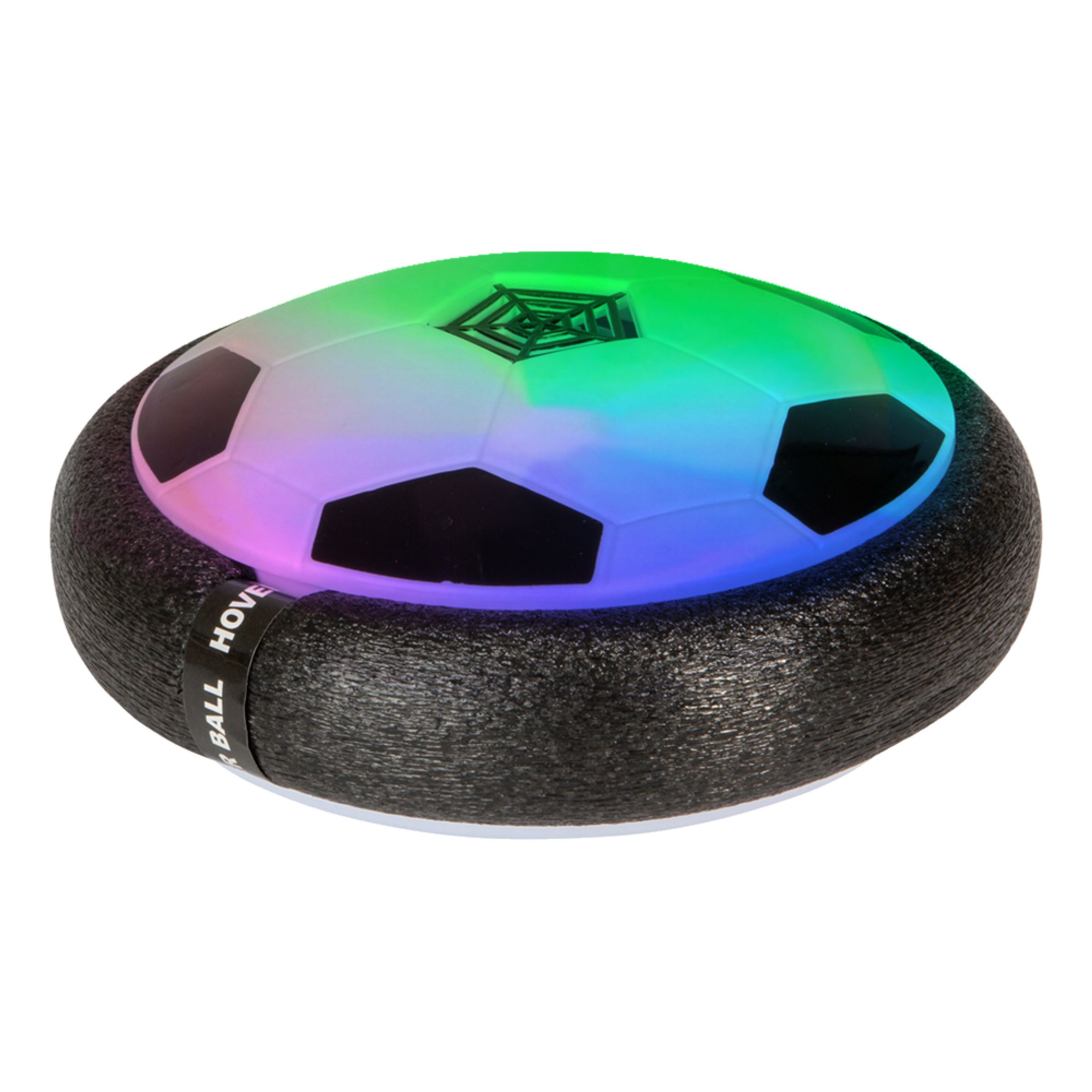 Svävande Fotboll med LED-belysning är en fotboll med inbyggd fläkt som svävar över golvet och studsar när den träffar en kant/vägg, likt air hockey. Bollen kommer med skumgummi-kanter som förhindrar skador på inredning och lister.