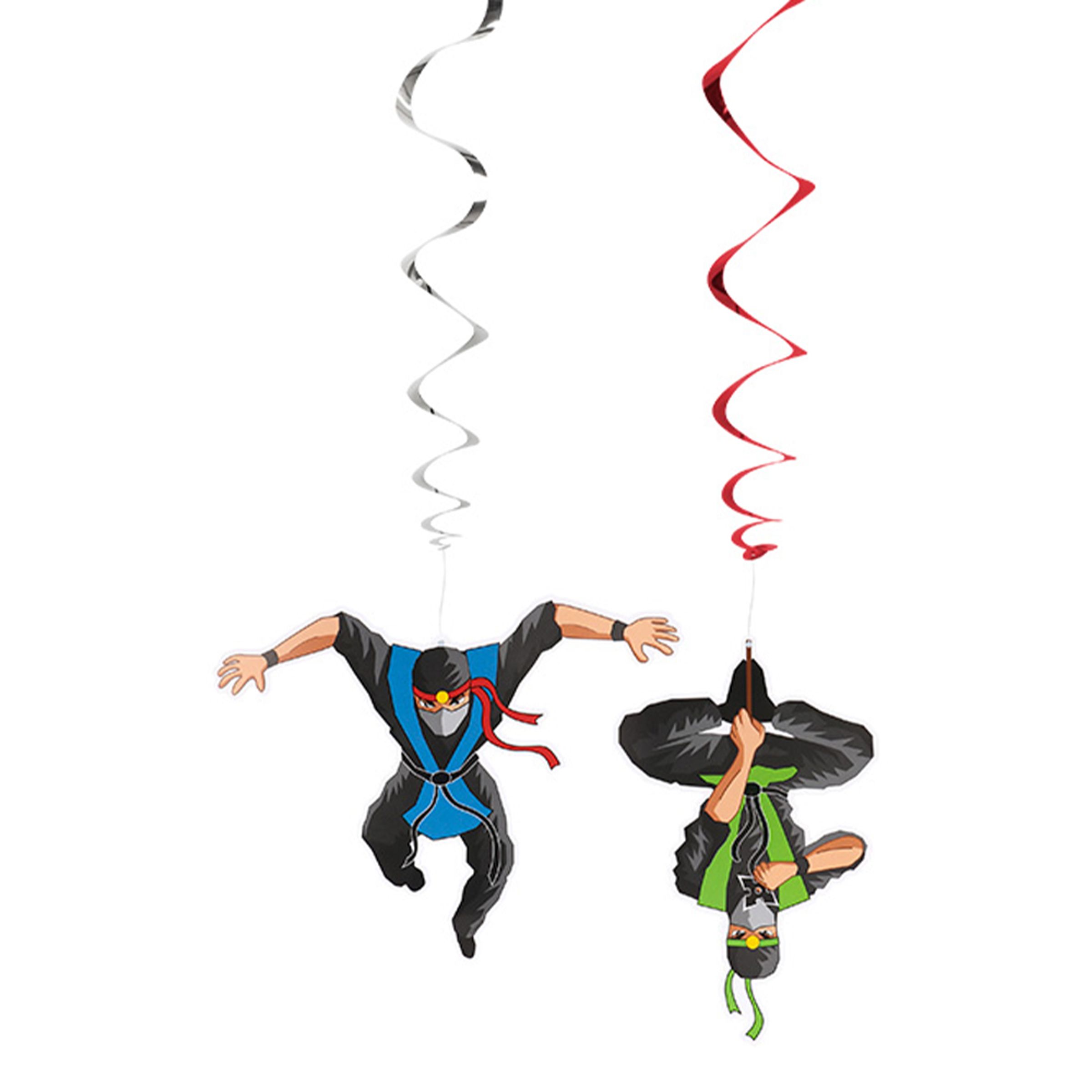 Swirls Ninja Takdekoration innehåller 2 superhäftiga ninjor som tillsammans med tråden mäter 85 cm. Kul pynt att hänga i taket på festliga kalas!