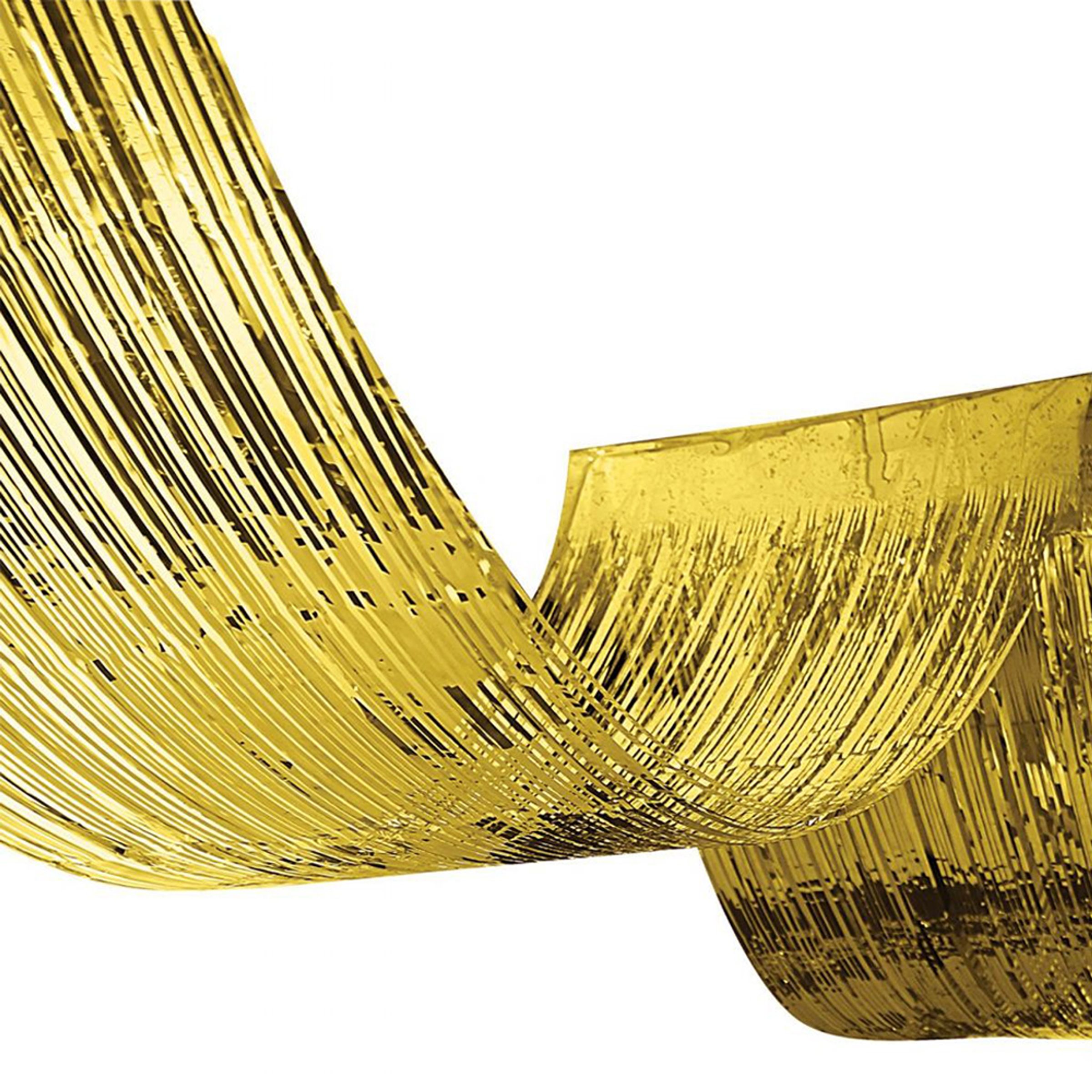 Takgardin Metallic Guld Fransar mäter 50 cm x 4,9 meter och är tillverkad av plast. En strålande elegant dekoration att förgylla taket med på storslagna fester!