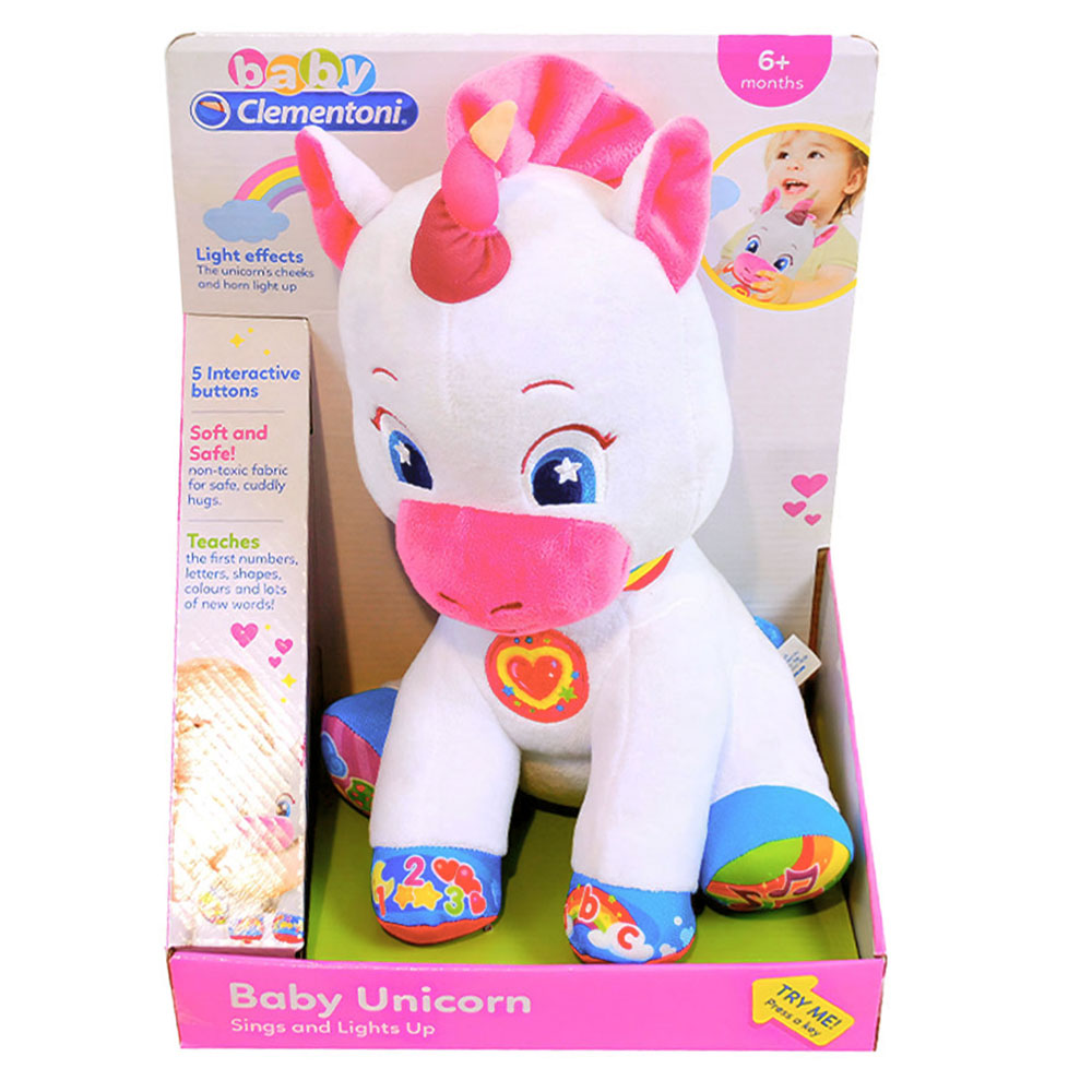 Söt enhörning-leksak som lär barnet om bokstäver, siffror, färger, former och skojiga nya ord. Tryck på de olika knapparna på denna unicorn leksak och hör den sjunger roliga sånger och ramsor samtidigt som dens magiska horn och kinder lyser upp. En riktigt rolig och framför allt givande leksak-enhörning som passar helt perfekt till alla unicorn-älskare på 6 månader och uppåt.