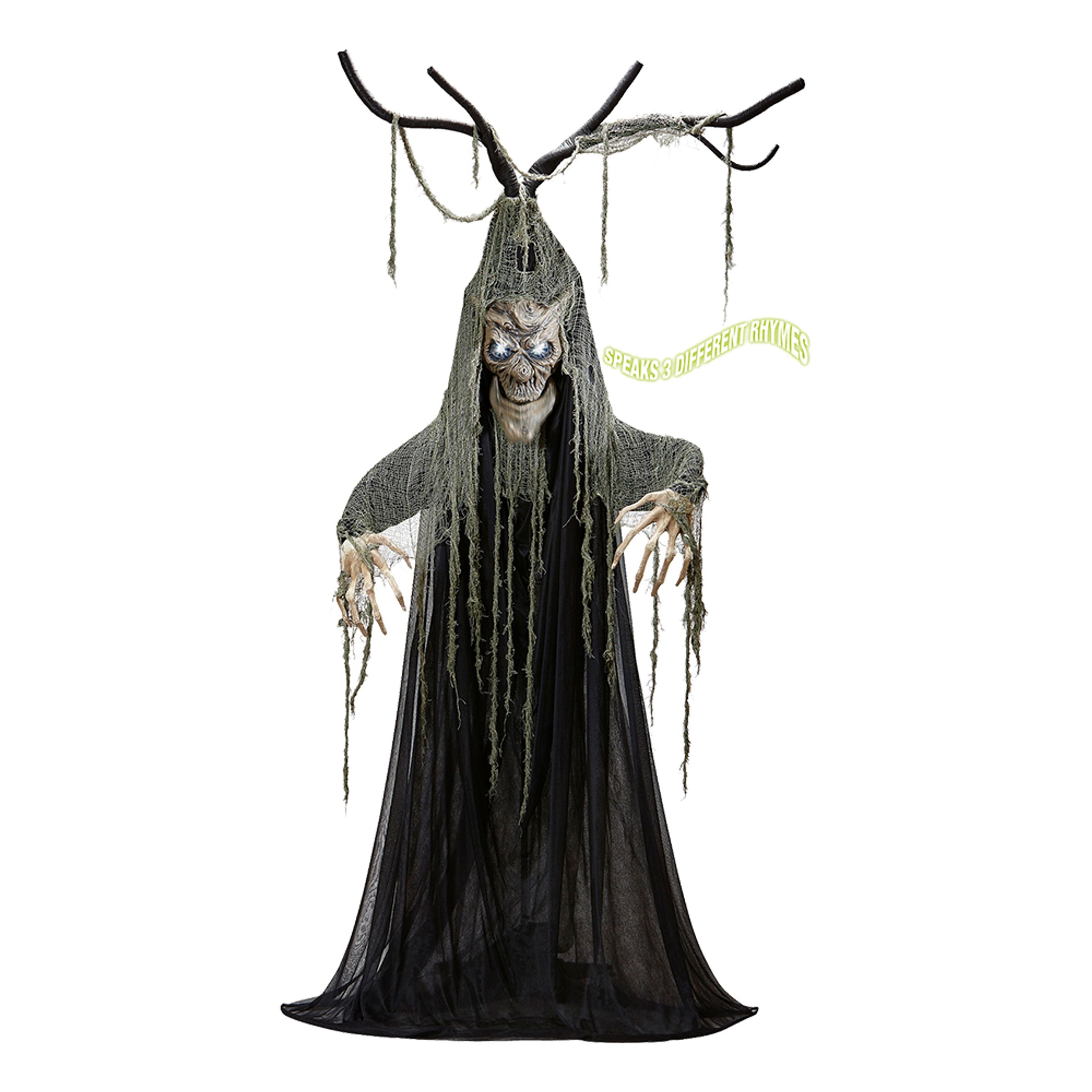 Talande Träd med Ljudsensor Prop är en dekor i form av ett träd. Vid ljud aktiveras trädet och det börjar då prata och skratta ett elakt skratt, samtidigt som munnen rör på sig och ögonen blinkar.