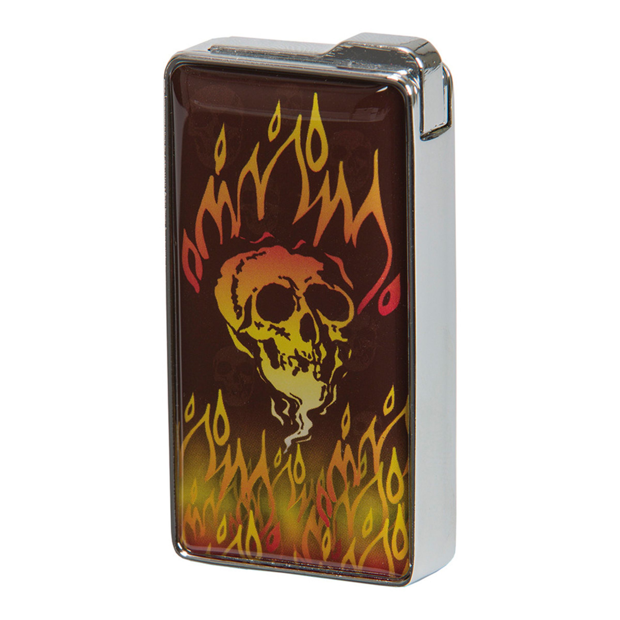 motiv på både fram och baksida. Tändaren går att fylla på med tändargas (medföljer ej). Storlek: 8 cm (H) x 3 cm (B)