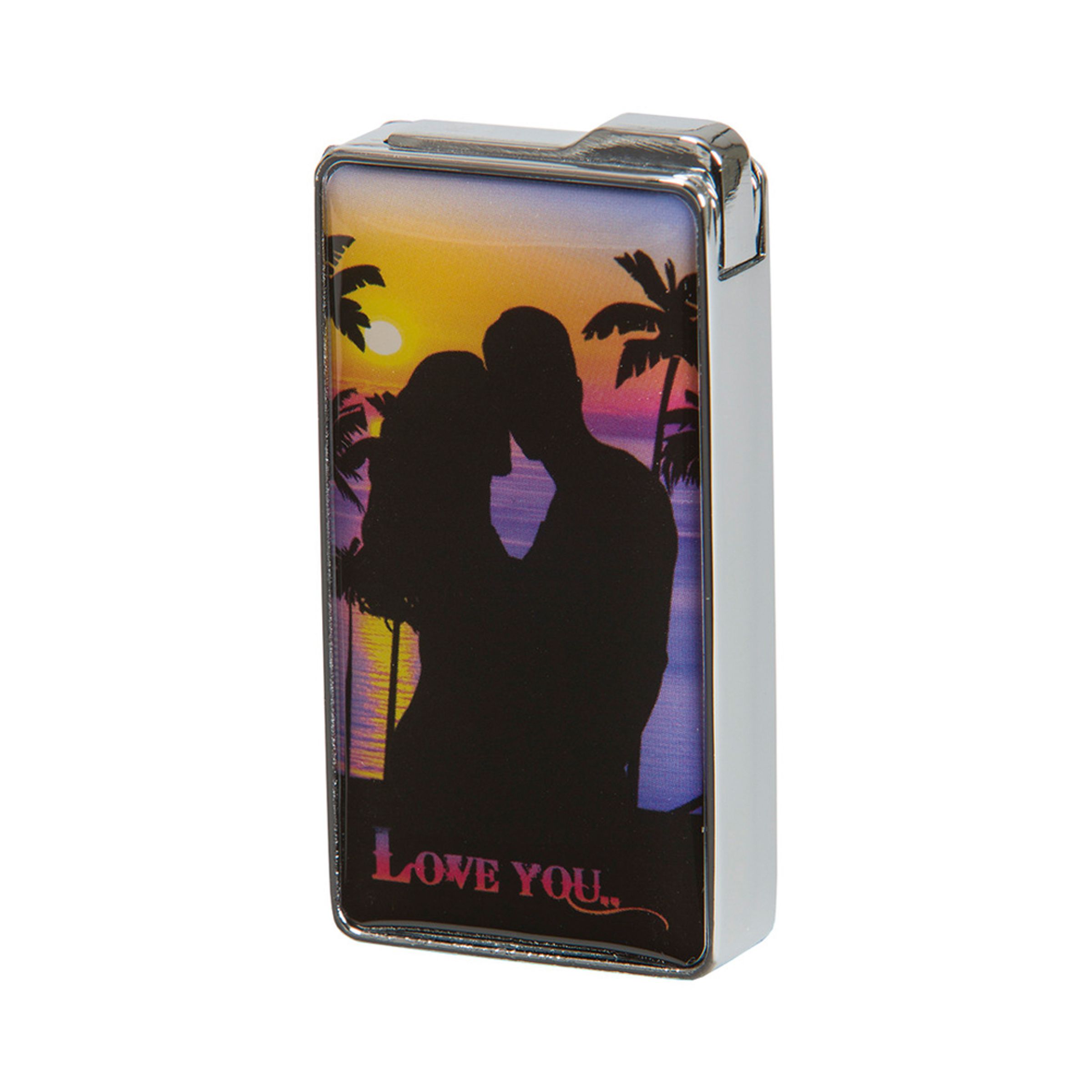 motiv på både fram och baksida. Tändaren går att fylla på med tändargas (medföljer ej). Storlek: 8 cm (H) x 3 cm (B)