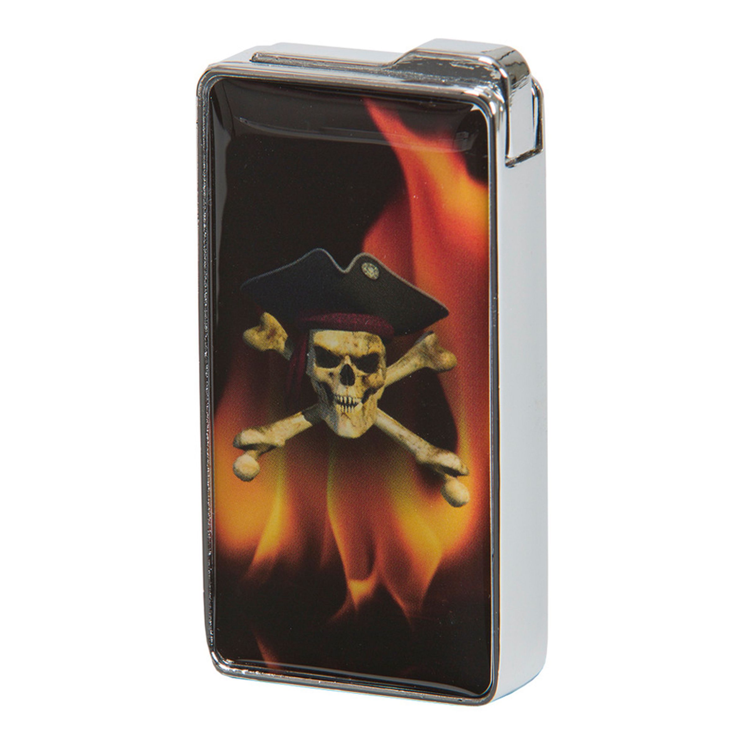motiv på både fram och baksida. Tändaren går att fylla på med tändargas (medföljer ej). Storlek: 8 cm (H) x 3 cm (B)
