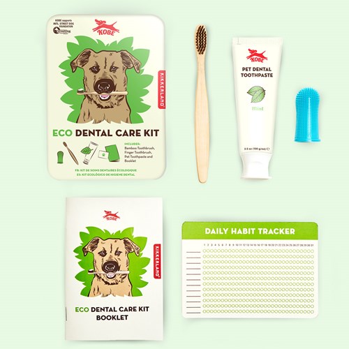 Håll din hund glad och frisk med detta set! Att ha rena tänder och bra munhygien är inte bara viktigt för oss människor, utan även för hundar. Setet innehåller en tandborste i bambu, fingertandborste och tandkräm för djur samt en booklet med tips och trix som gör tandborstningen både snabb och effektiv.
