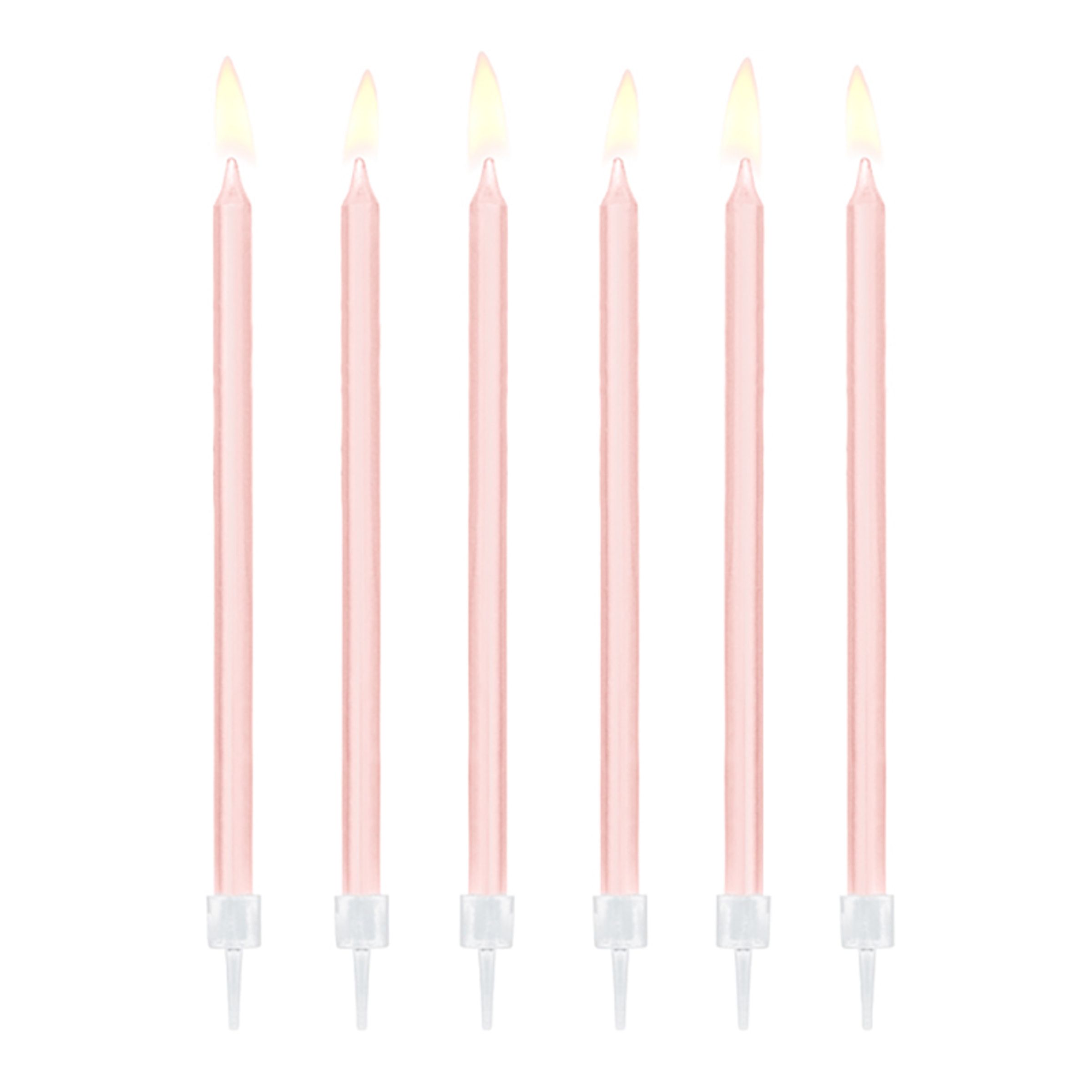 Tårljus Ljusrosa är födelsedagsljus i ljusrosa färg. Ljusen är tillverkade av stearin och mäter ca 14 cm. Innehåller 12 st ljus med hållare.
