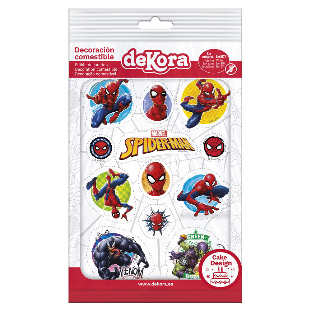 Fixa dig en riktigt snygg och proffsig hemmagjord Spiderman-tårta till kalaset, denna absoluta favorit-superhjälte är här för att hjälpa dig få en snygg och oförglömlig tårta.Med snygga tårtbilder av Spindelmannen är det lätt att göra en tårta som ser riktigt proffsig ut, och dessa utklippsfigurer är perfekta att dekorera sidorna på din superhjältetårta, eller som komplement till en större central tårtbild med Spiderman. Som små bilder fungerar de förstås också jättebra att dekorera mindre bakverk som cupcakes, brownies eller liknande. Du behöver bara klippa ut bilderna från arket och ta bort plasten på baksidan och sen kan du dekorera direkt på tårtan.