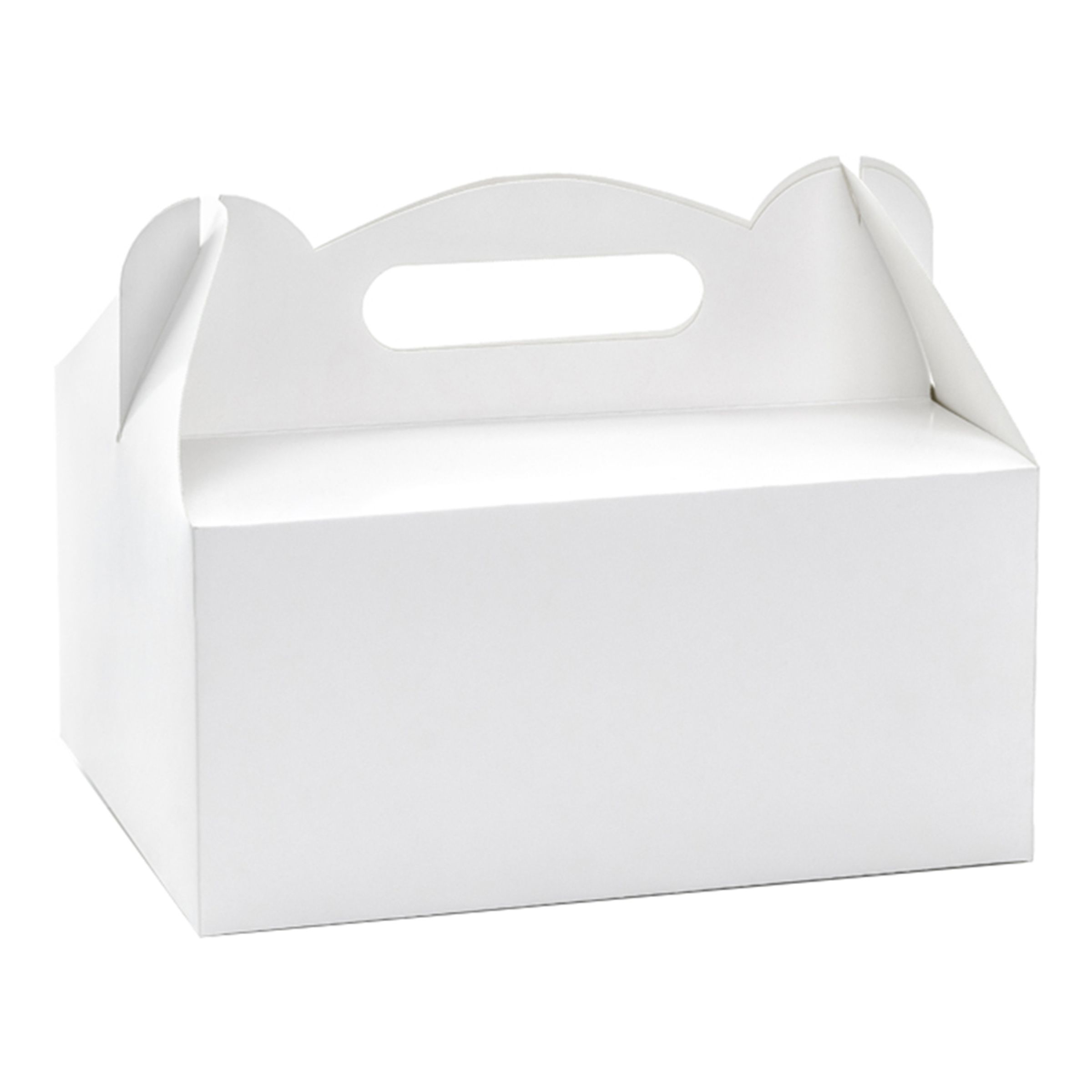 Tårtbox Vit är lådor där överbliven mat (kanske en bit tårta från bröllopsfesten?) kan läggas och enkelt tas hem av gästerna. De är tillverkade i papp och mäter ca 9 x 14 x 19 cm. Levereras i 10-pack.