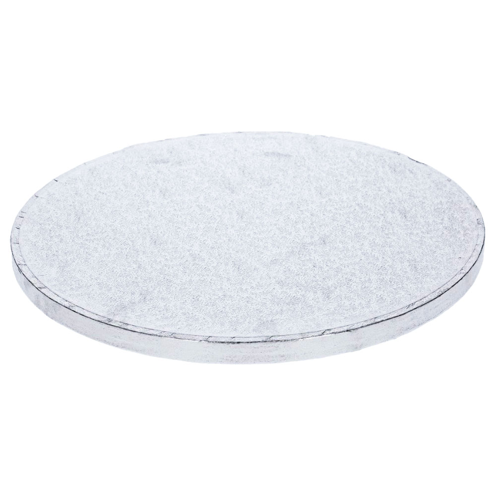 Tårtbricka Silver 28 cm omfattar en återanvändbar tårtbricka med silvrig folie på ovansidan som är ca 28 cm stor.