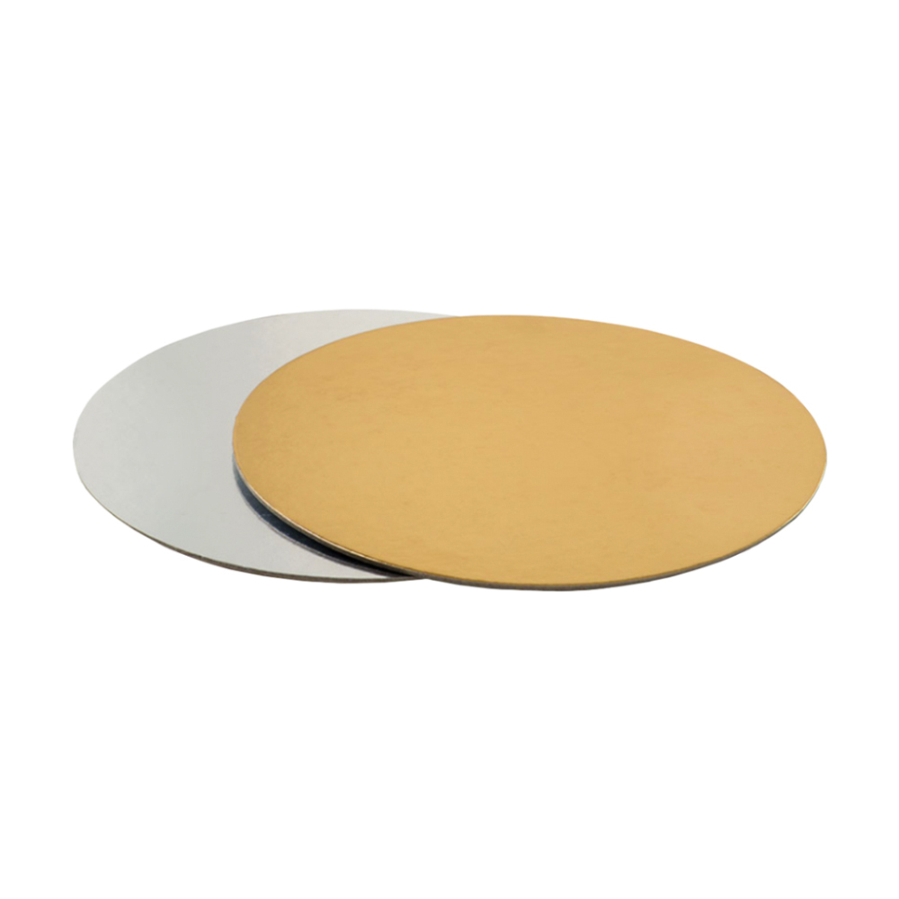 Nu kan du lägga upp dina vackra tårtor på runda cake boards tårtbrickor i glänsande metallic guld eller silver, dessa tårtfat är så snygga att de är en dekoration i sig och får din tårta att se extra lyxig ut. Ett tårtunderlägg lyfter din dukning samt skyddar bord och duk. Använd din runda guld-silver tårtbricka i papp som uppläggningsfat till andra bakverk som kakor, muffins och cupcakes också.