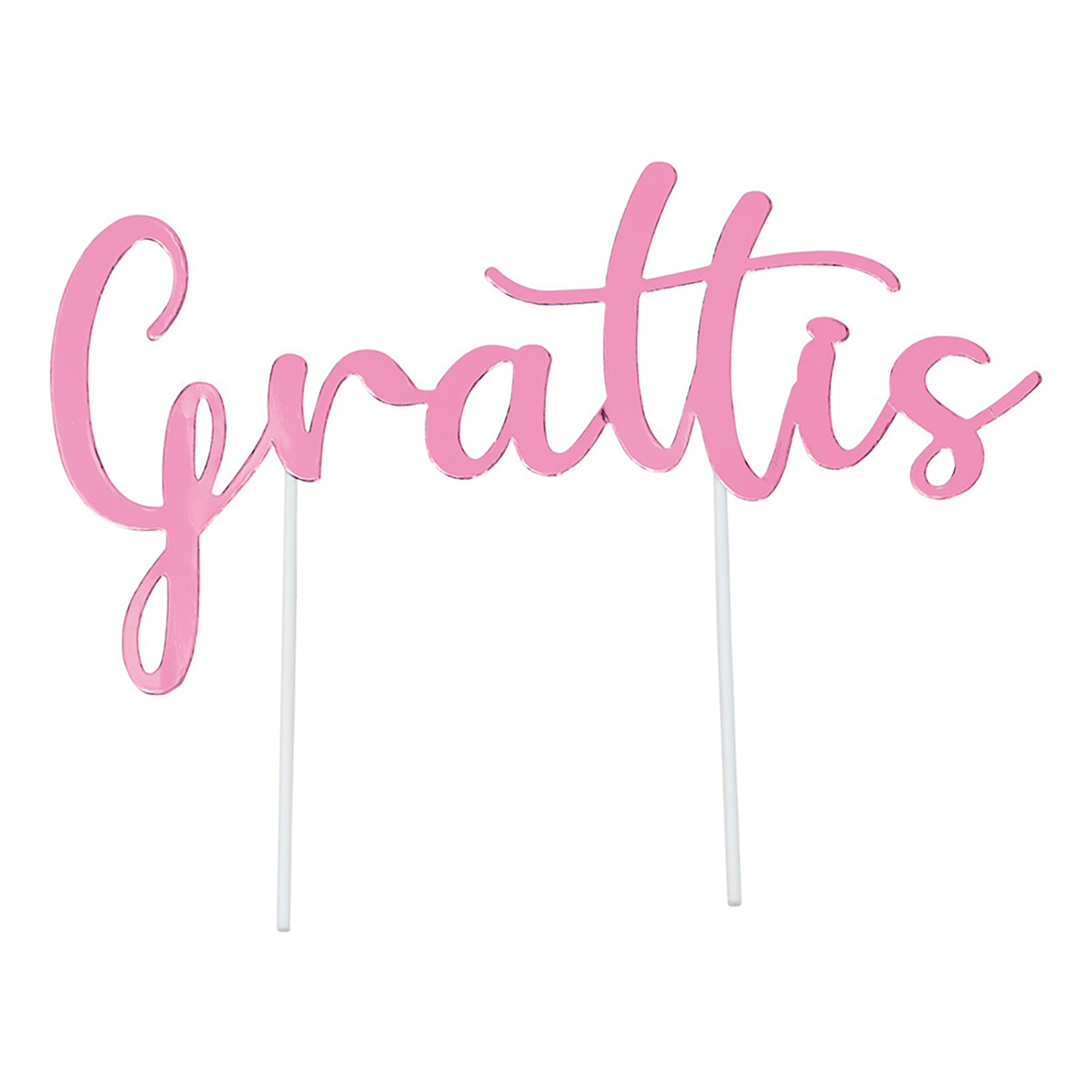 Tårtdekoration Grattis Rosa sticker du enkelt ner i tårtan som en liten dekoration att toppa den med. Passar utmärkt till såväl födelsedagsfesten som till studenten, baby showern eller firanden av andra slag.