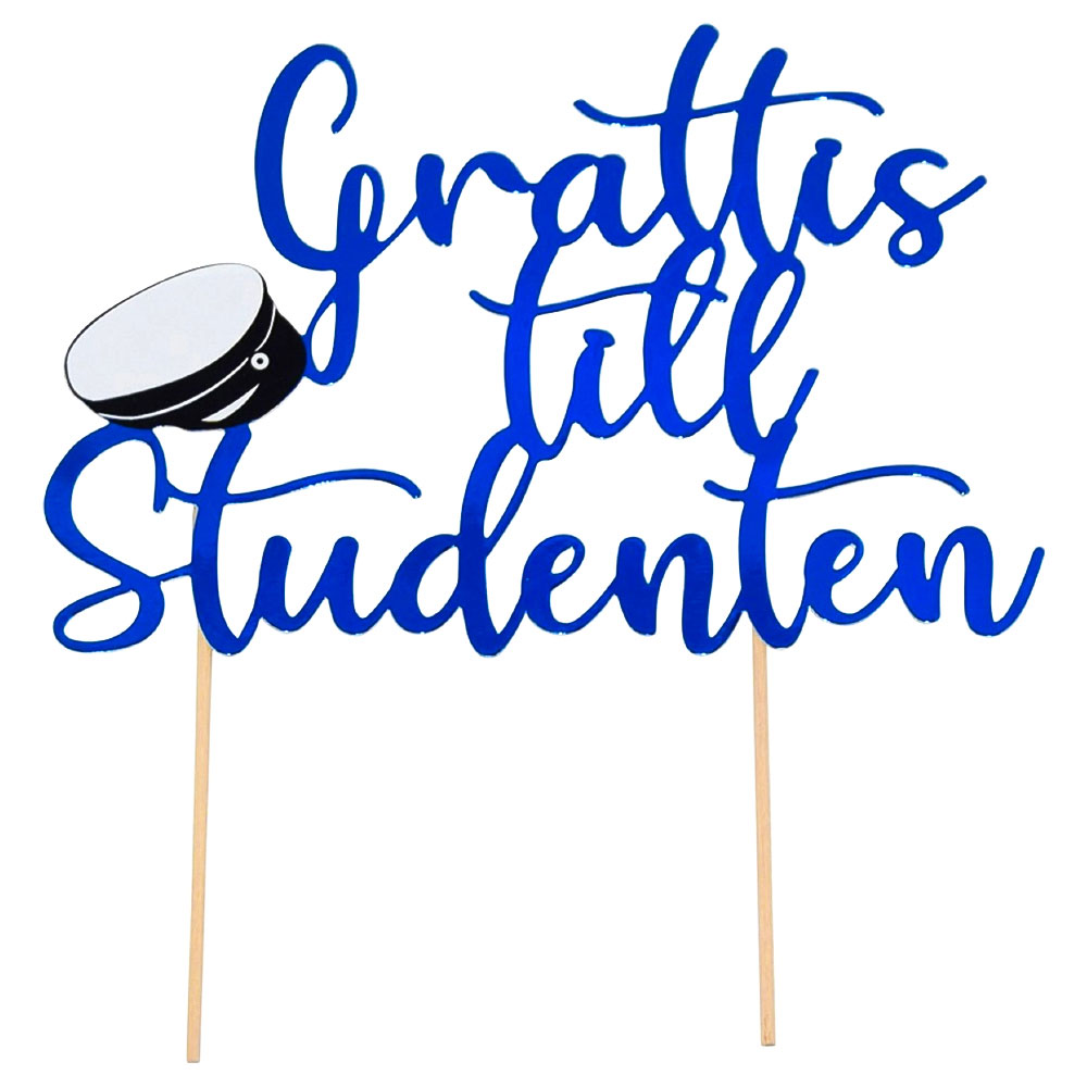 Fira studentfest med en festlig cake topper i glänsande blått! En härlig tårdekoration med "Grattis till studenten" text som blir en superfin detalj till student firandet, perfekt dekoration till en riktigt läcker tårta.