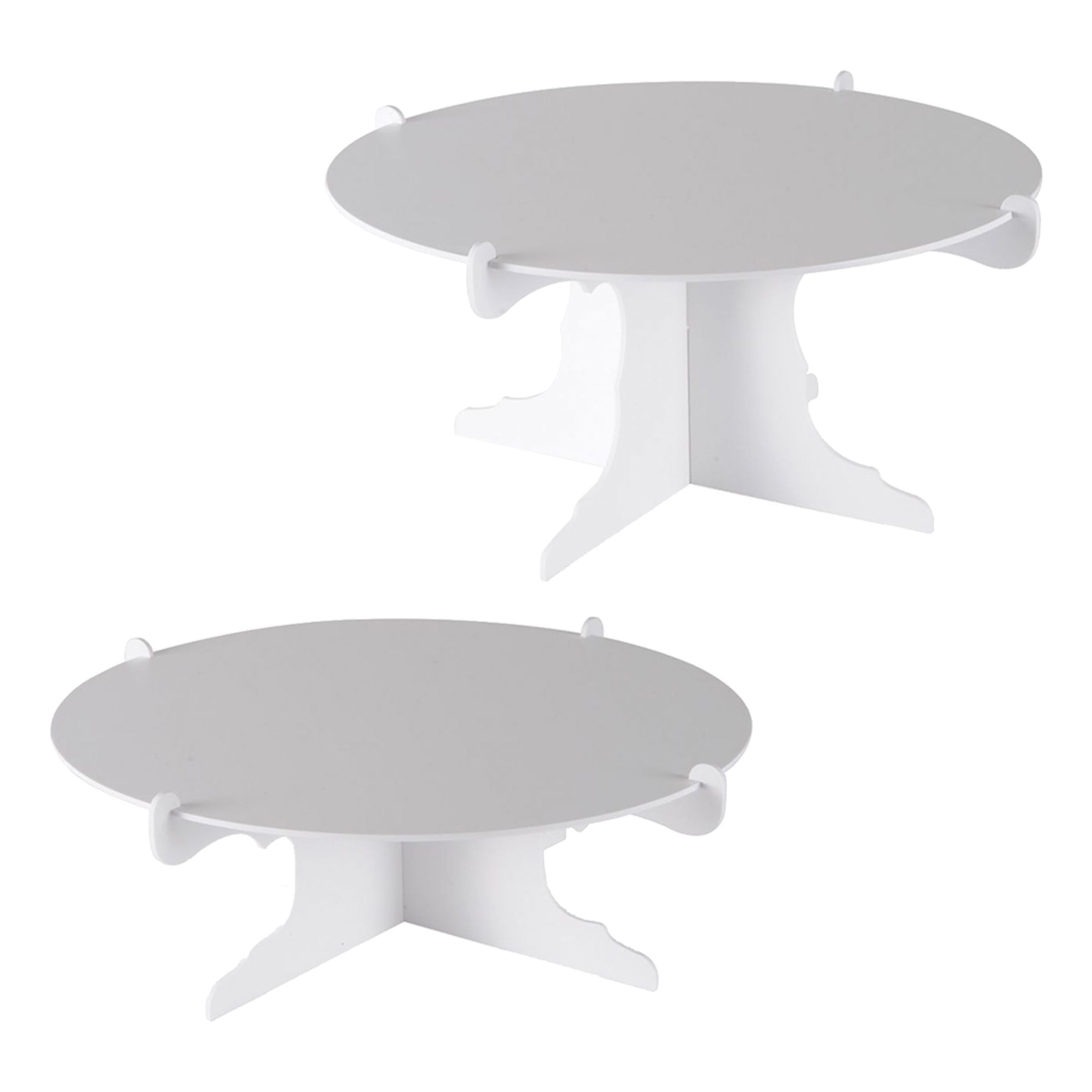 Tårtfat vit inkluderar två stycken tårtfat tillverkade i papp som är enkla att montera. De har en diameter på 32 cm. De ena fatet mäter 10 cm högt medan det andra mäter 15 cm.