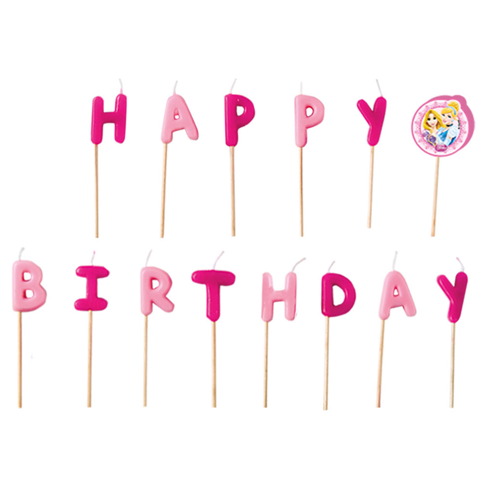 Tårtljus Disney Prinsessor Live Your Story omfattar rosa prinsesstårtljus i form av bokstäver som bildar texten "Happy Birthday". Ljusen sitter på vita plasttandpetare som gör det enkelt att sticka ner dem i tårtan. De är totalt ca 6 cm långa.