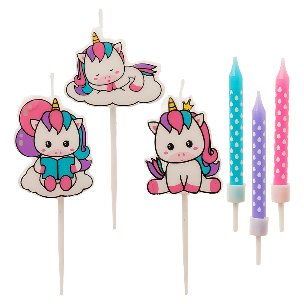 Vackra tårtljus som blir som pricken över i på din enhörningstårta! De fina färgerna och de söta enhörningsmotiven gör dem till en utmärkt unicorn tårtdekoration för alla som önskar sig en sagolik födelsedagstårta i enhörning-stil. Helt enkelt perfekta tårtljus för alla barn som vill bjuda in till enhörningskalas!