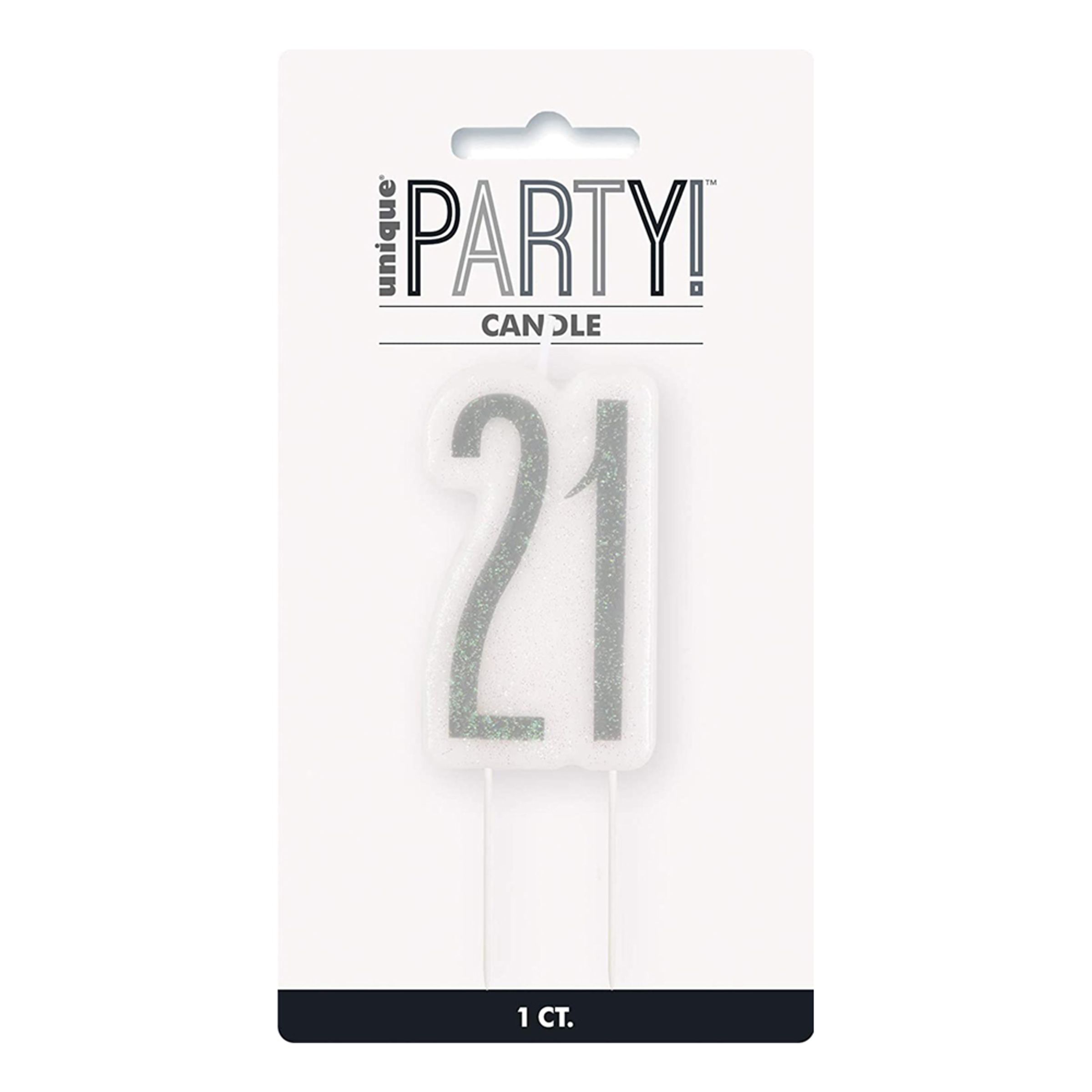 Tårtljus Födelsedag Silver är ett ljus med en siffra i en glittrig silverfärg. Tårtljuset är tillverkat i vax och är ca 7 cm stort. På ljuset sitter en pinne så att du enkelt kan sticka ner det i tårtan eller i ett annat bakverk.
