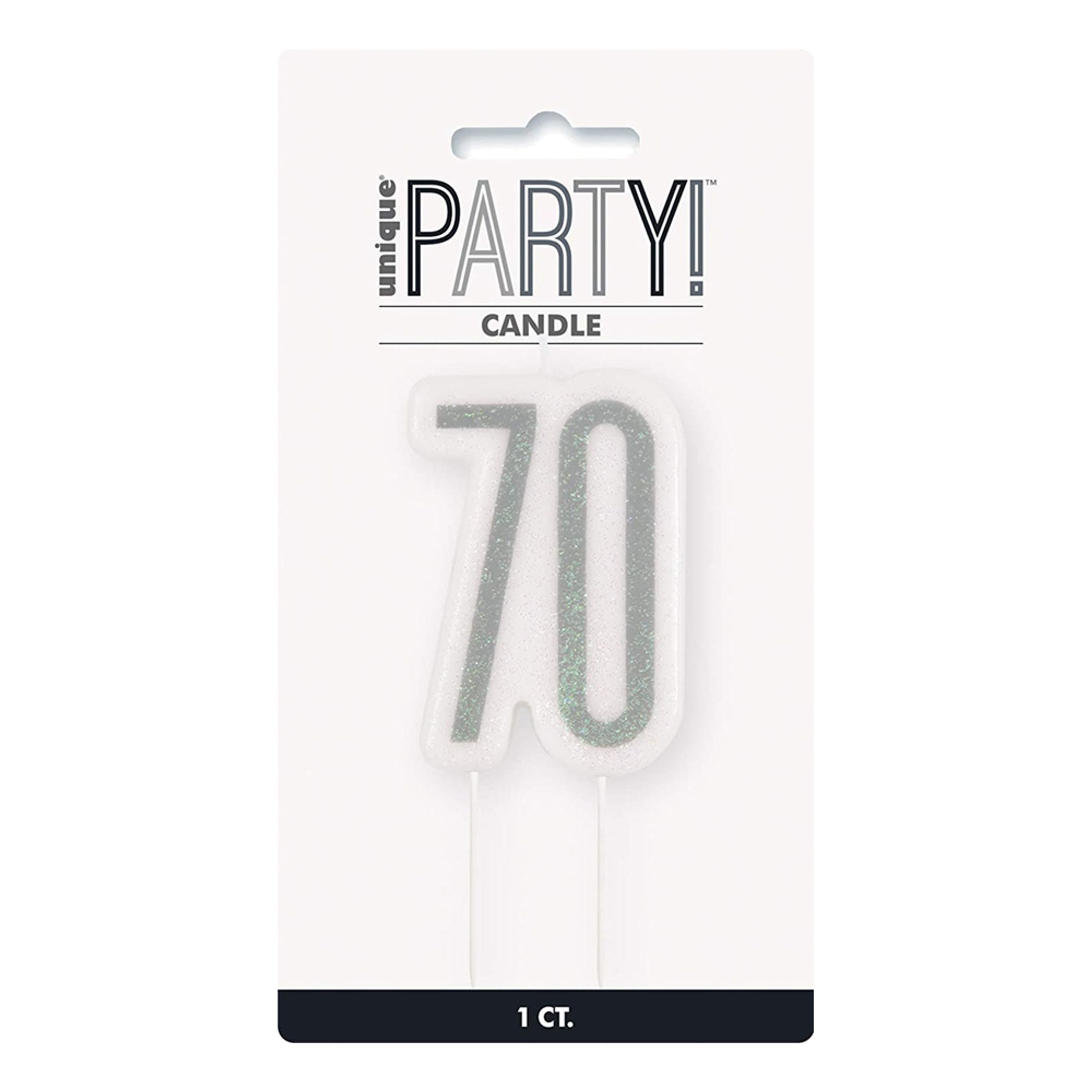 Tårtljus Födelsedag Silver är ett ljus med en siffra i en glittrig silverfärg. Tårtljuset är tillverkat i vax och är ca 7 cm stort. På ljuset sitter en pinne så att du enkelt kan sticka ner det i tårtan eller i ett annat bakverk.