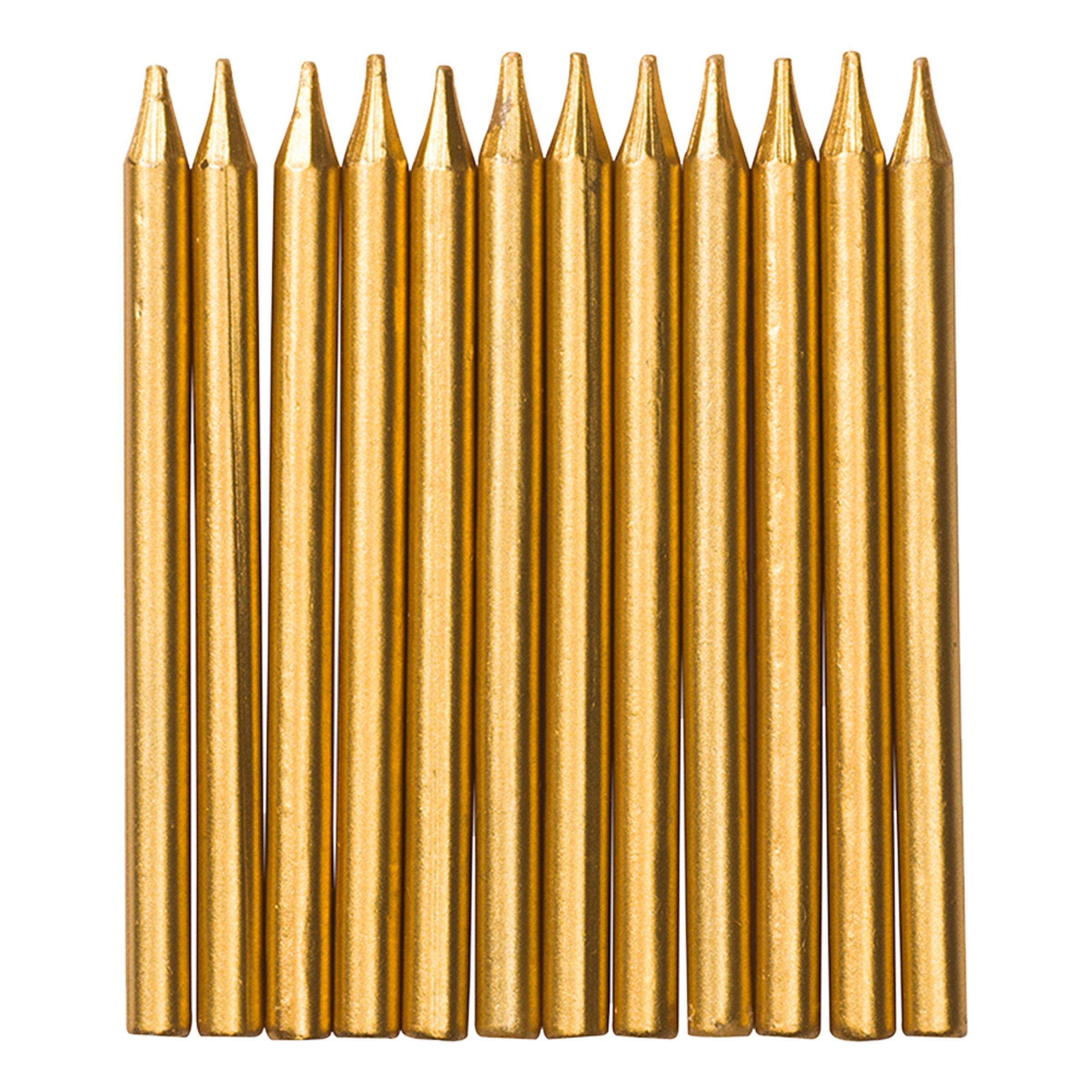 Tårtljus Guld är ett gäng tårtljus i läckert guld. Använd dem tillsammans för att få en maffig dekoration på tårtan. Perfekt till födelsedagsfesten, jubileumet eller bröllopfesten!