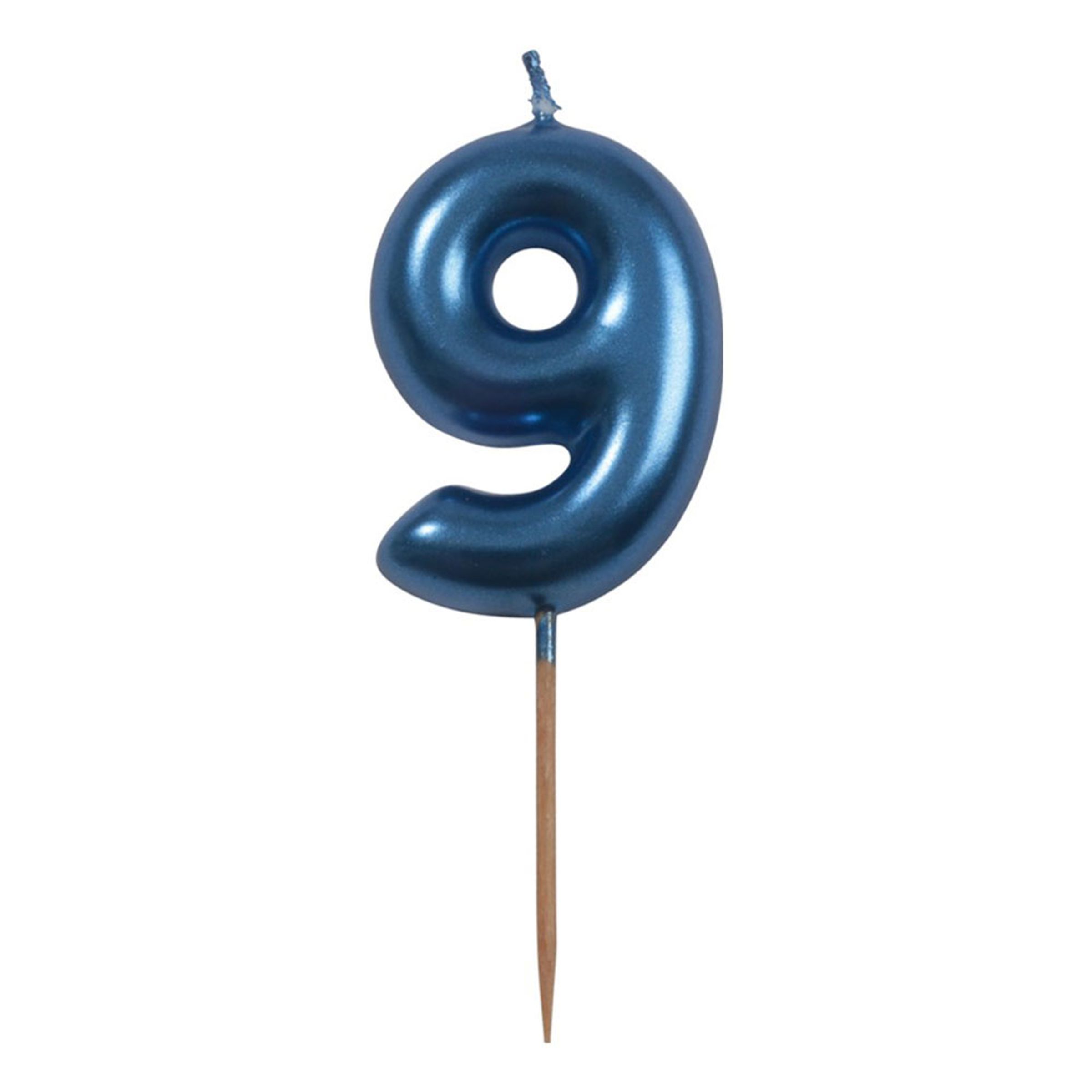 Tårtljus Siffra Blå Metallic – Siffra 9