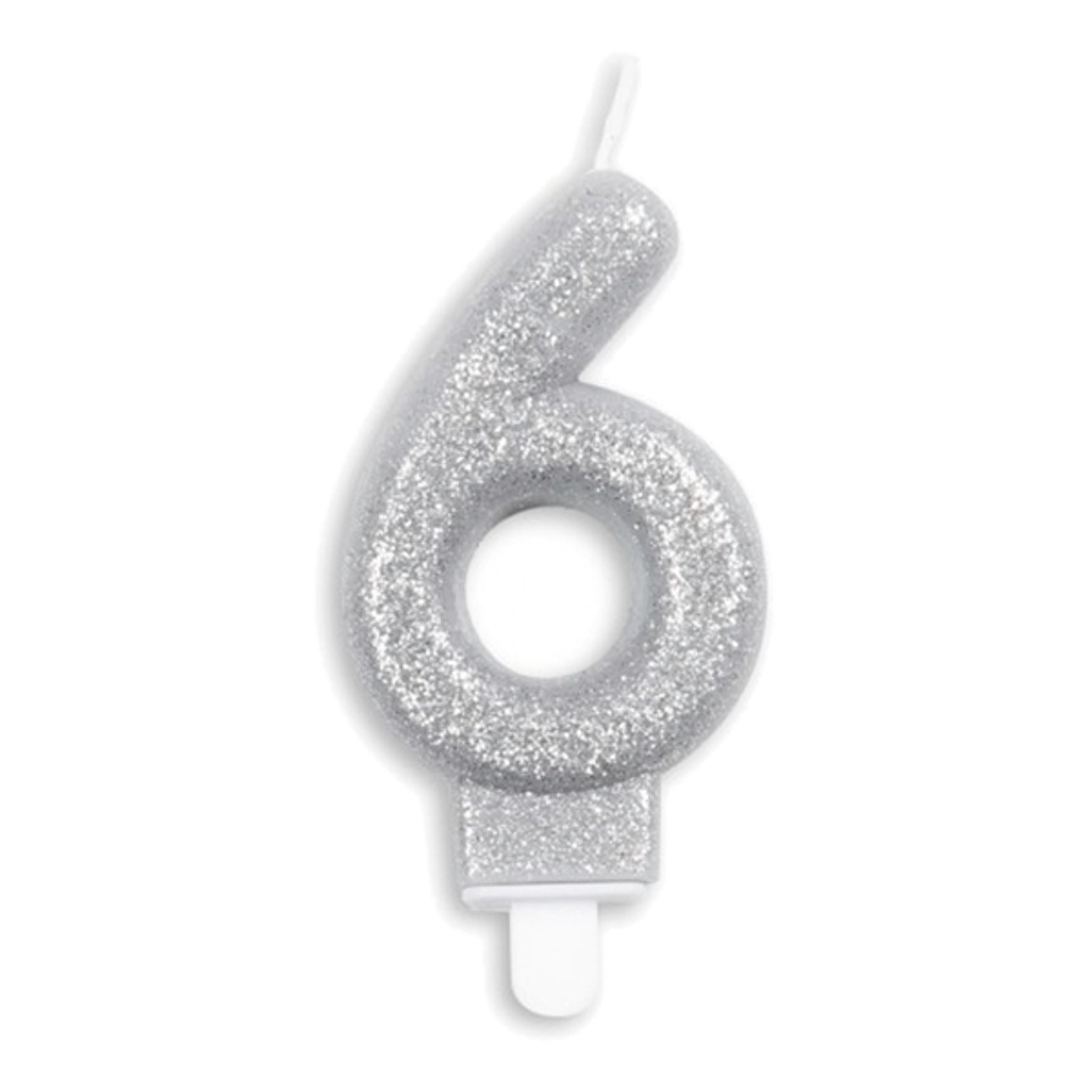 Tårtljus Siffra Glitter Silver – Siffra 6