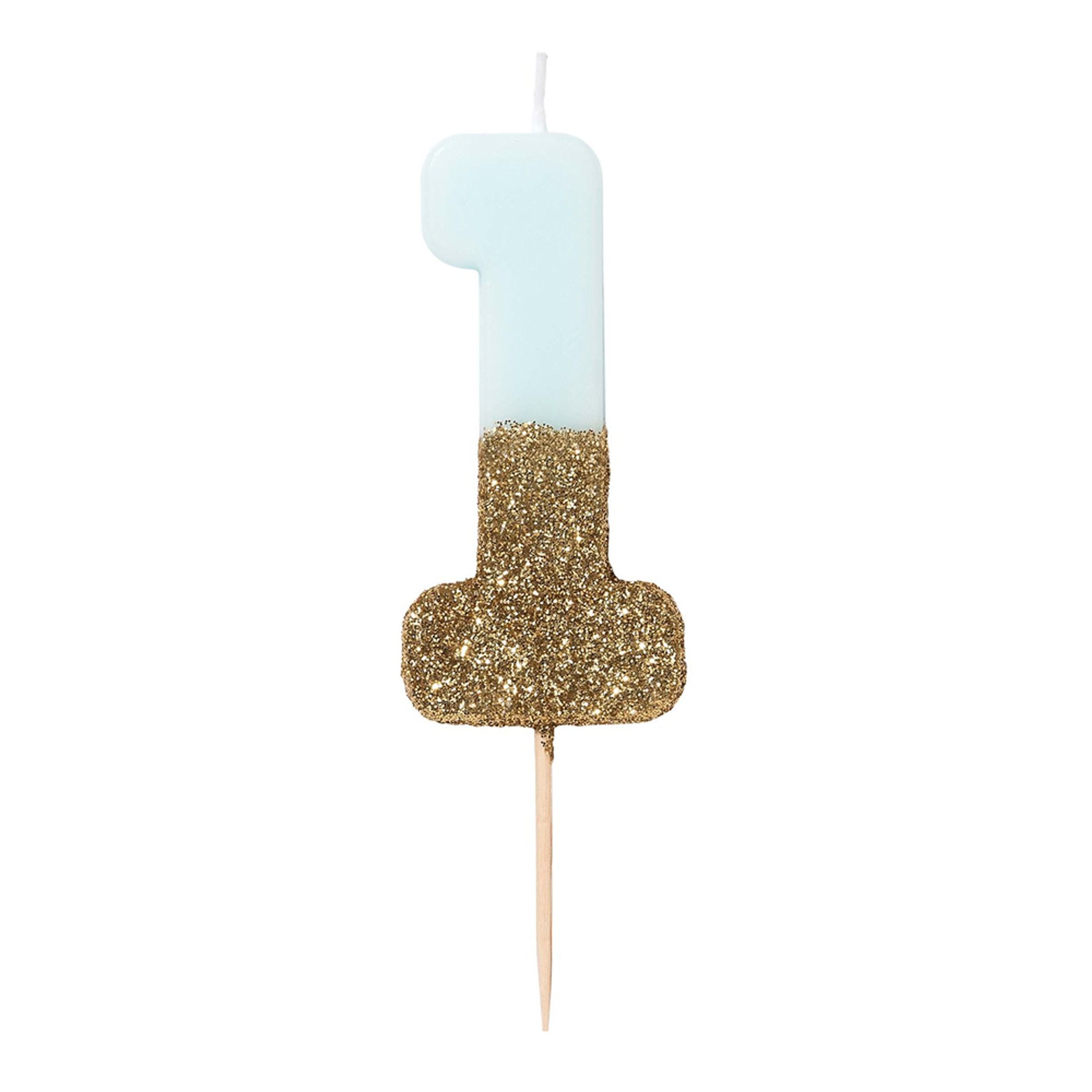 Tårtljus Siffra Ljusblå/Guldglitter – Siffra 1