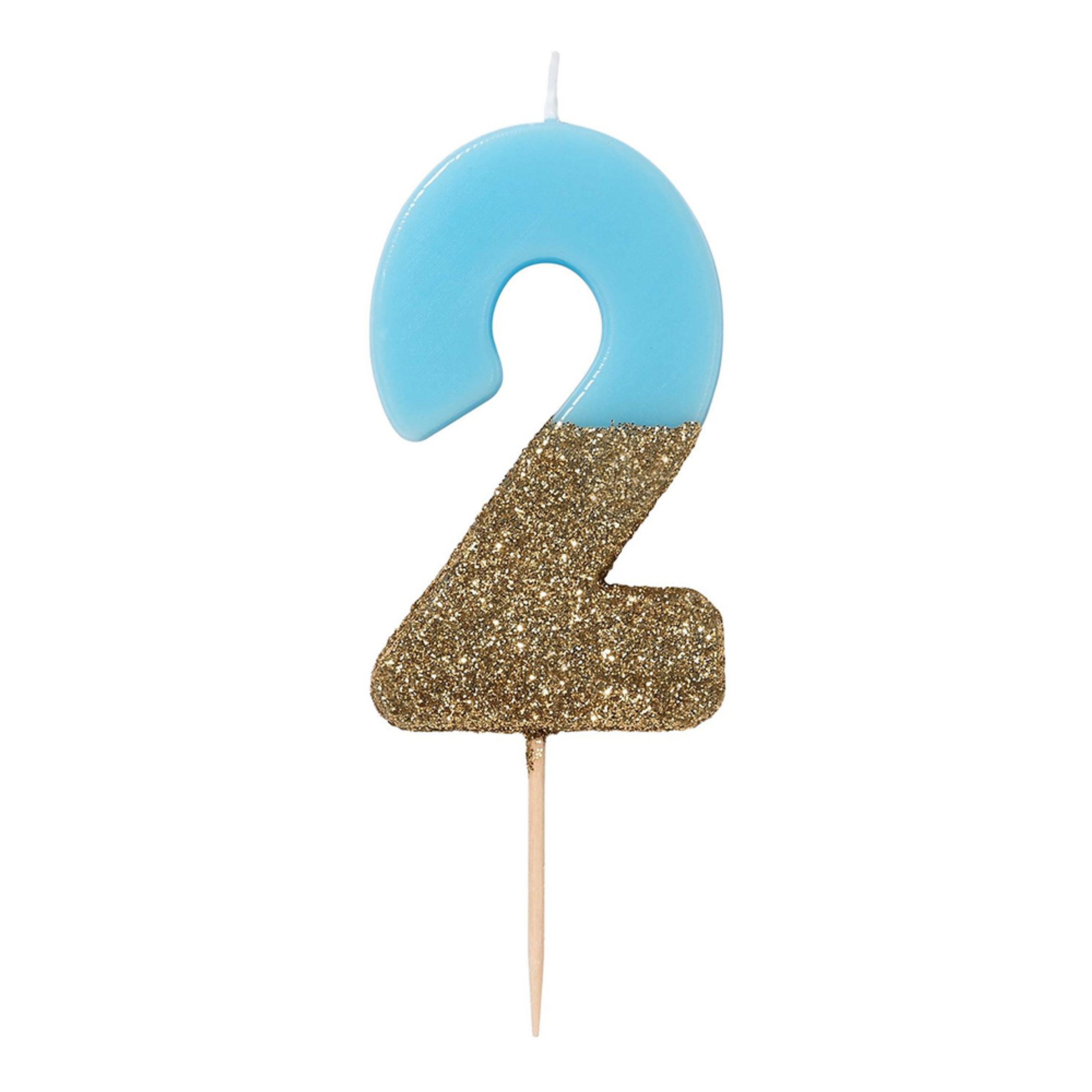 Tårtljus Siffra Ljusblå/Guldglitter – Siffra 2