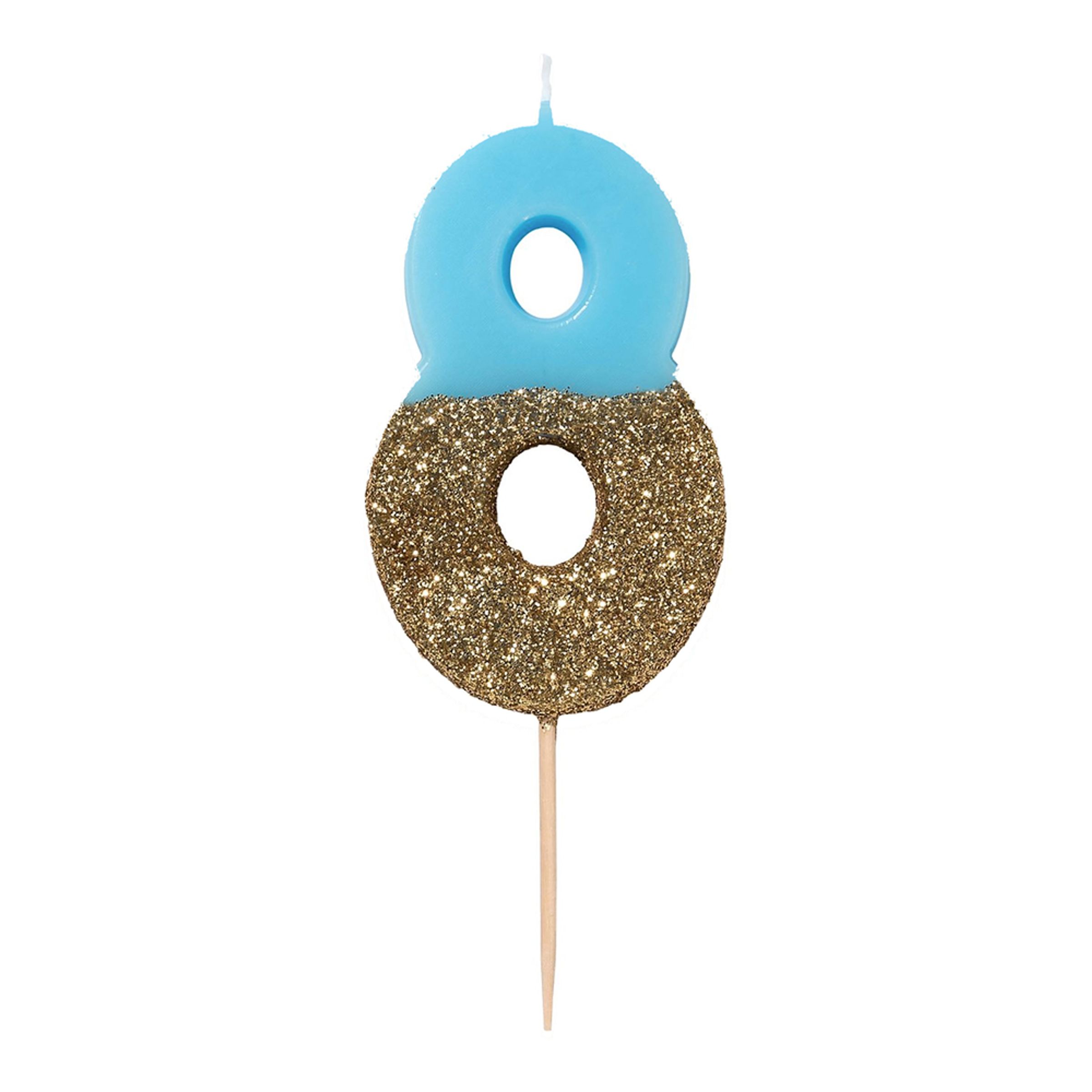 Tårtljus Siffra Ljusblå/Guldglitter – Siffra 8