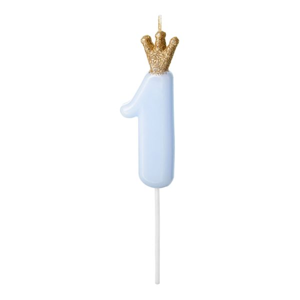 Tårtljus Siffra med Krona Blå – 1 år