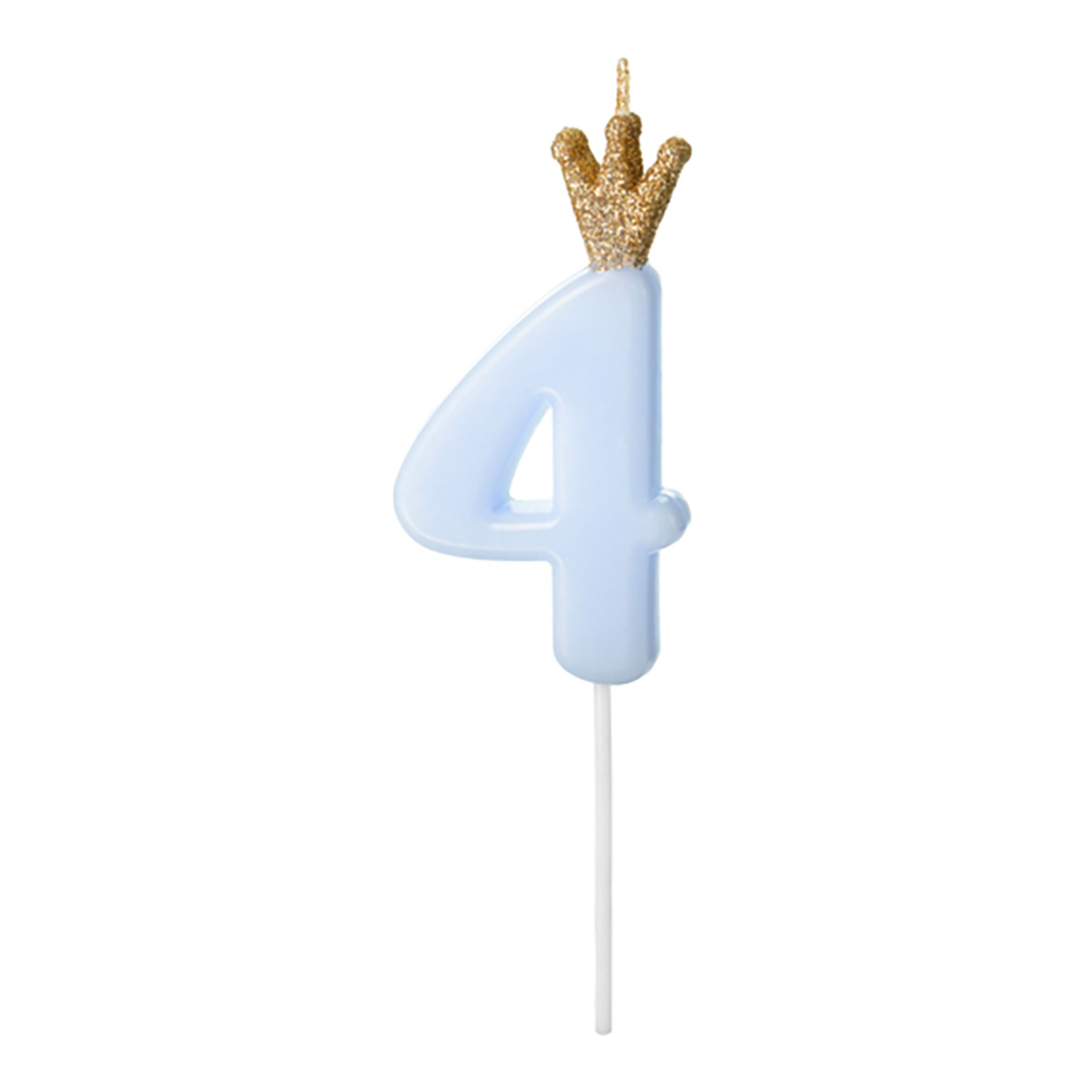 Tårtljus Siffra med Krona Blå är ett fint tårtljus i ljusblå färg med glittrig guldkrona på toppen. Ett måste till födelsedagstårtan!