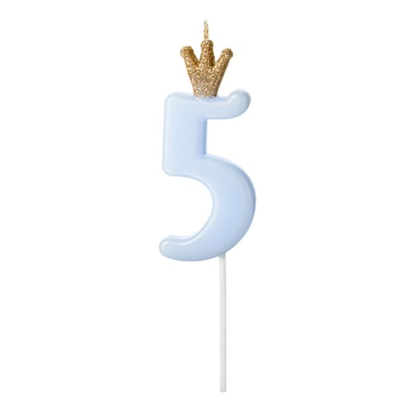 Tårtljus Siffra med Krona Blå är ett fint tårtljus i ljusblå färg med glittrig guldkrona på toppen. Ett måste till födelsedagstårtan!