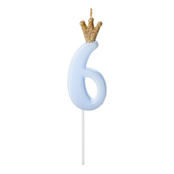 Tårtljus Siffra med Krona Blå – 6 år