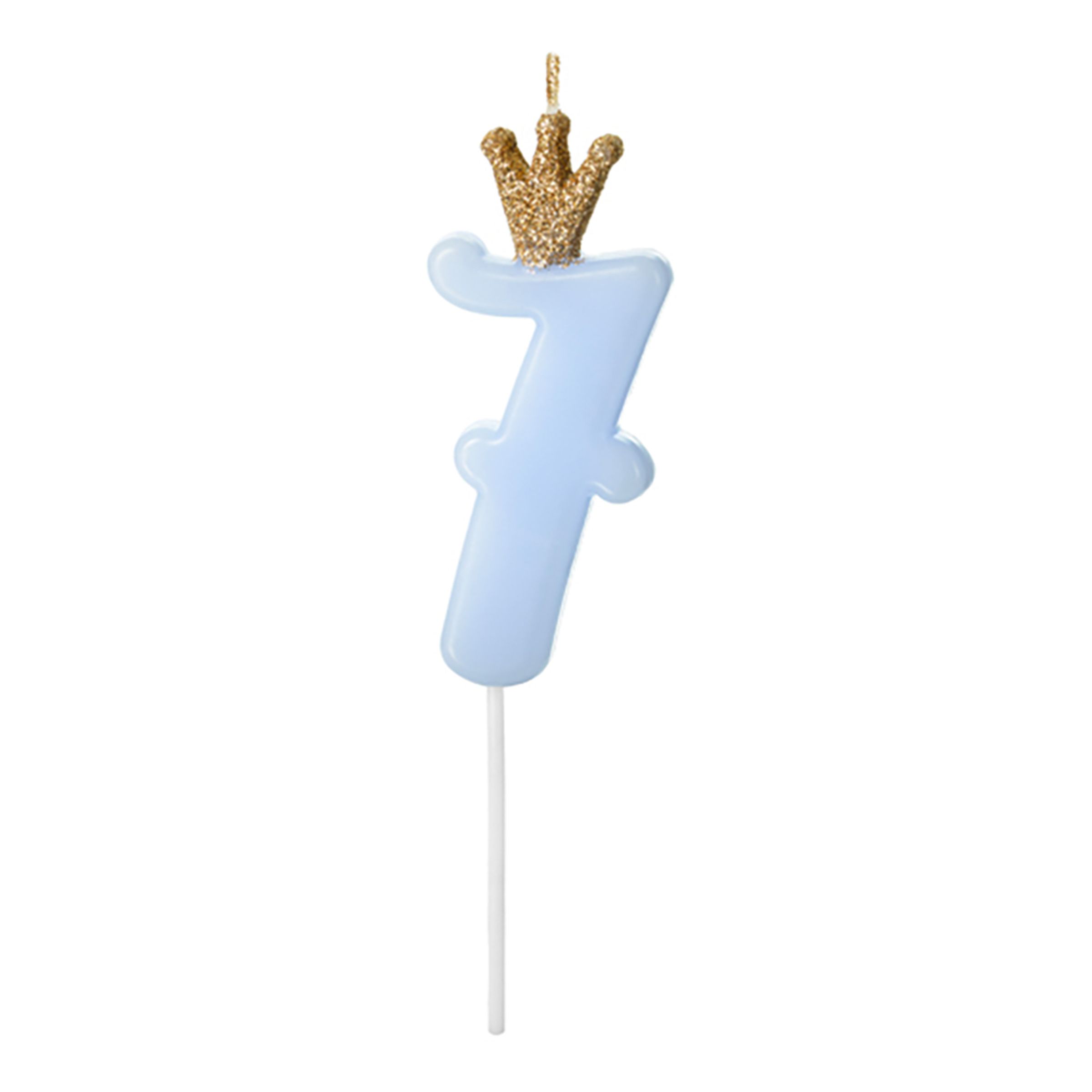 Tårtljus Siffra med Krona Blå är ett fint tårtljus i ljusblå färg med glittrig guldkrona på toppen. Ett måste till födelsedagstårtan!