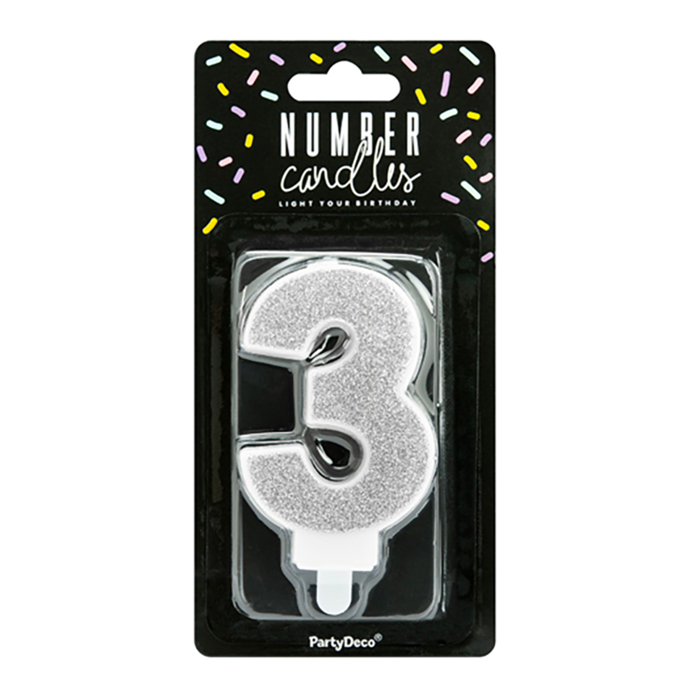 Tårtljus Siffra Silver Glitter – Siffra 3