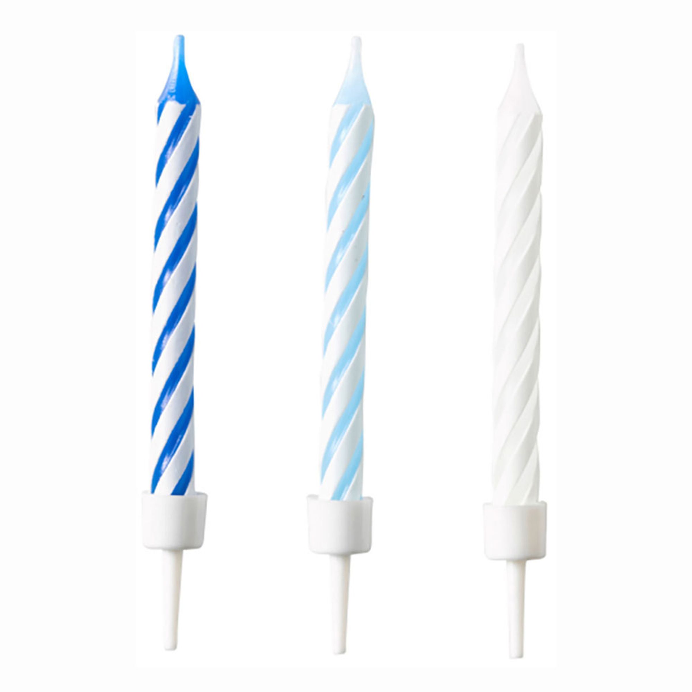 Tårtljus Spiral Blå är skruvade tårtljus som kommer i färgerna: blå, ljusblå och vit. Sätt ljusen i tårtan som en festlig dekoration!