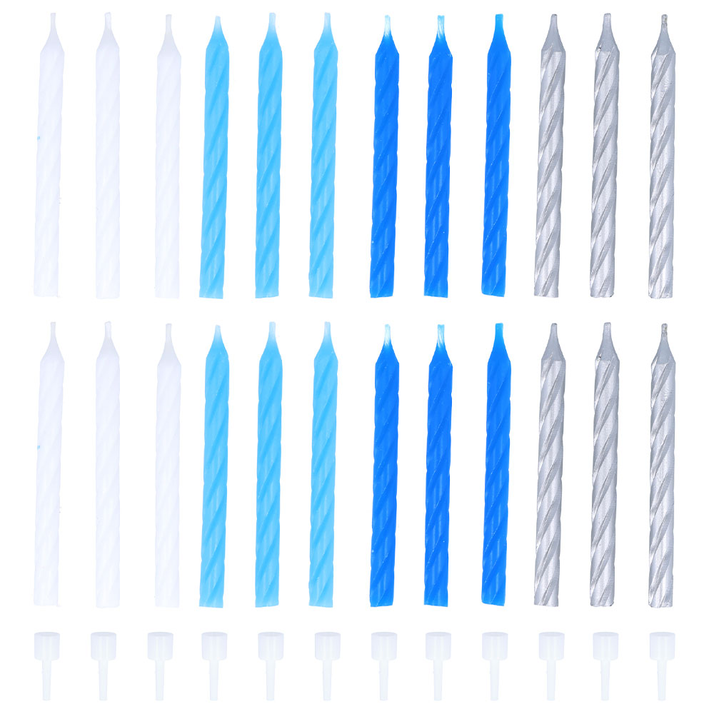 Tårtljus Spiral Vit/Blå/Silver innehåller: