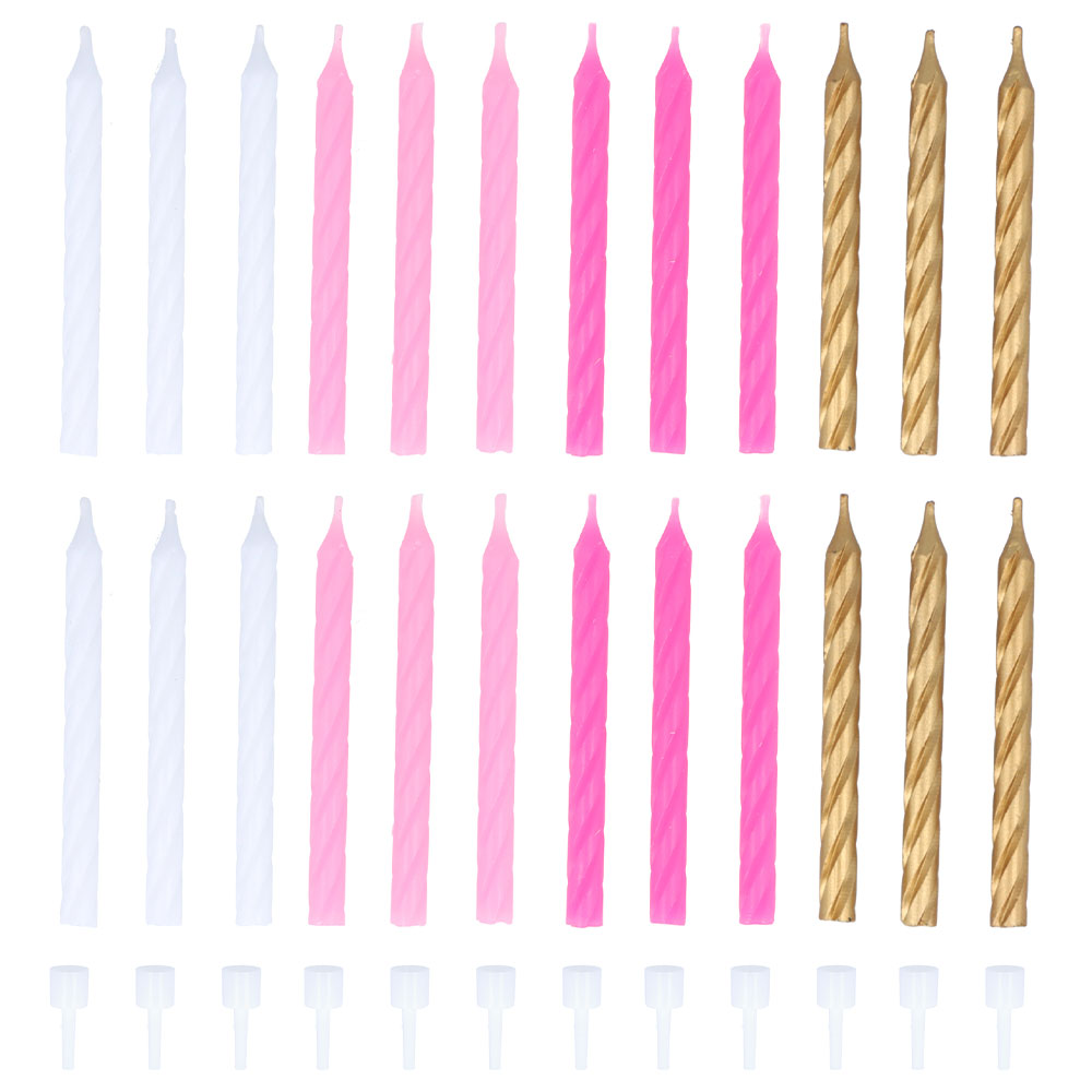 Tårtljus Spiral Vit/Rosa/Guld innehåller:
