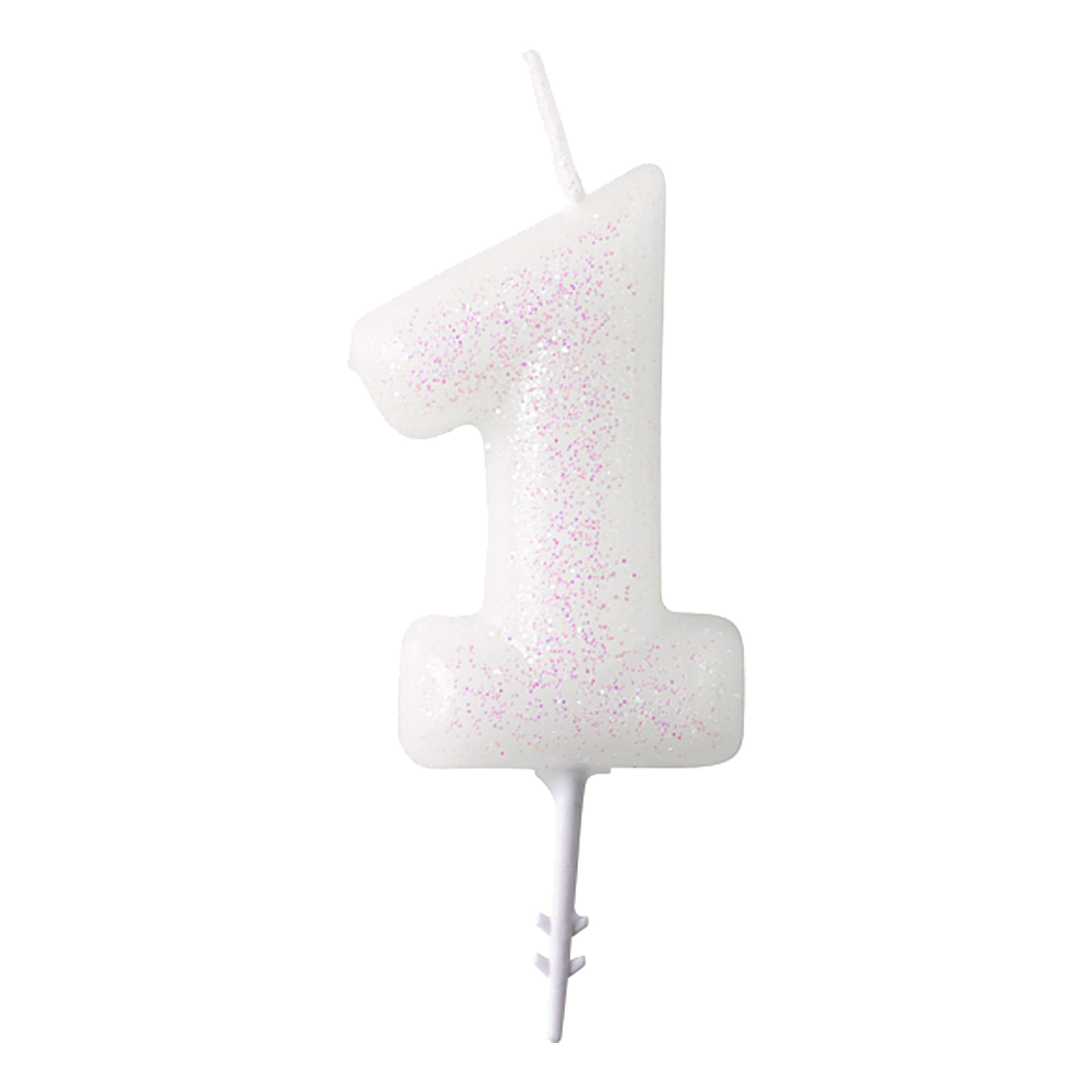 Tårtljus Vit Siffra Rosa Glitter – Siffra 1