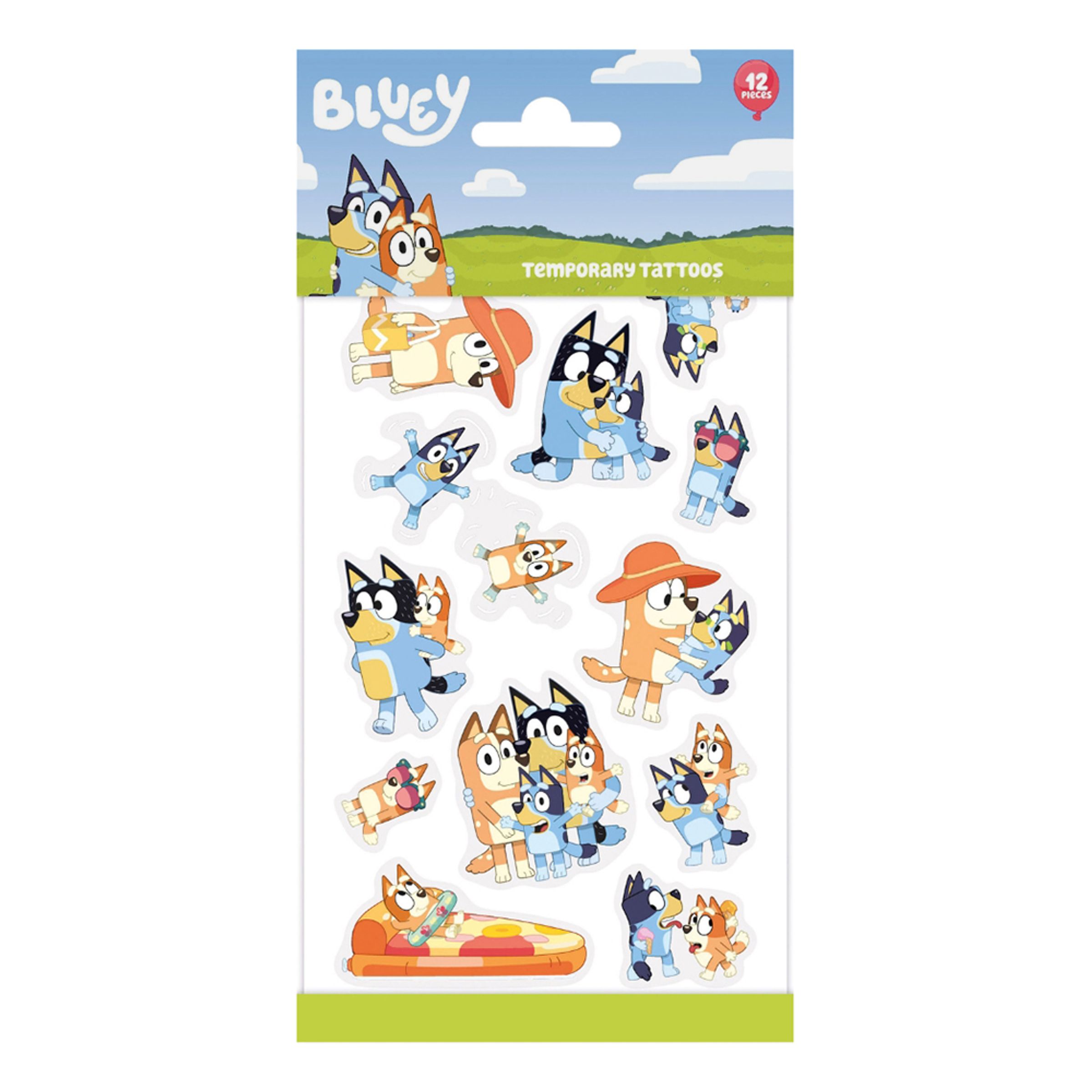 Tatueringar Bluey innehåller 12 stycken gnuggisar som appliceras på huden med fuktig trasa. Rolig present att t.ex. lägga i kalaspåsen när det vankas fiskedamm eller skattjakt! Tatueringarna tvättas bort med tvål och vatten.