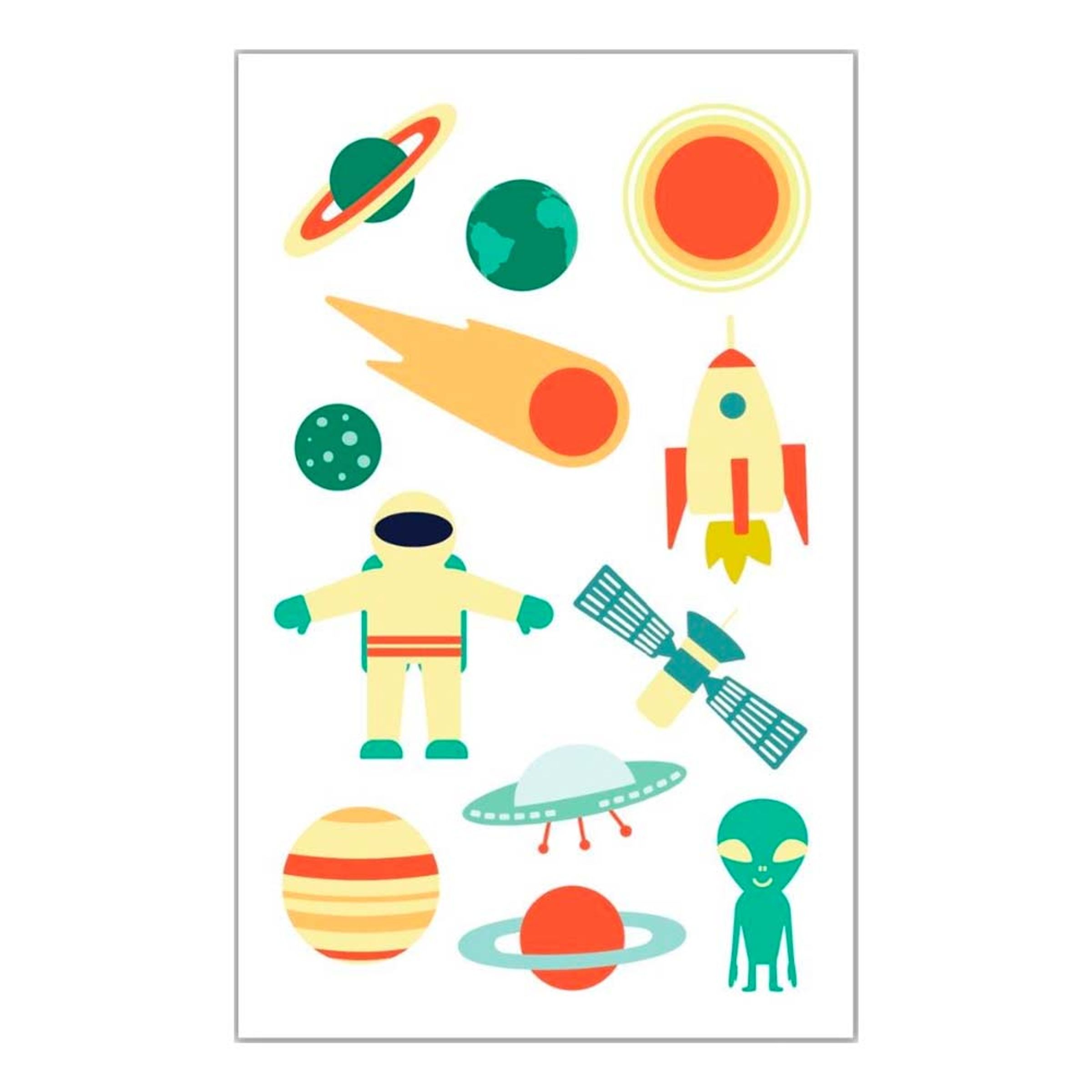 Rymdkalas på gång? Då antar vi att dina gäster är något för unga för att tatuera sig, men det gäller lyckligtvis inte temporära gnuggisar! Applicera med vatten och tvätta enkelt bort när rymdtemat är över!