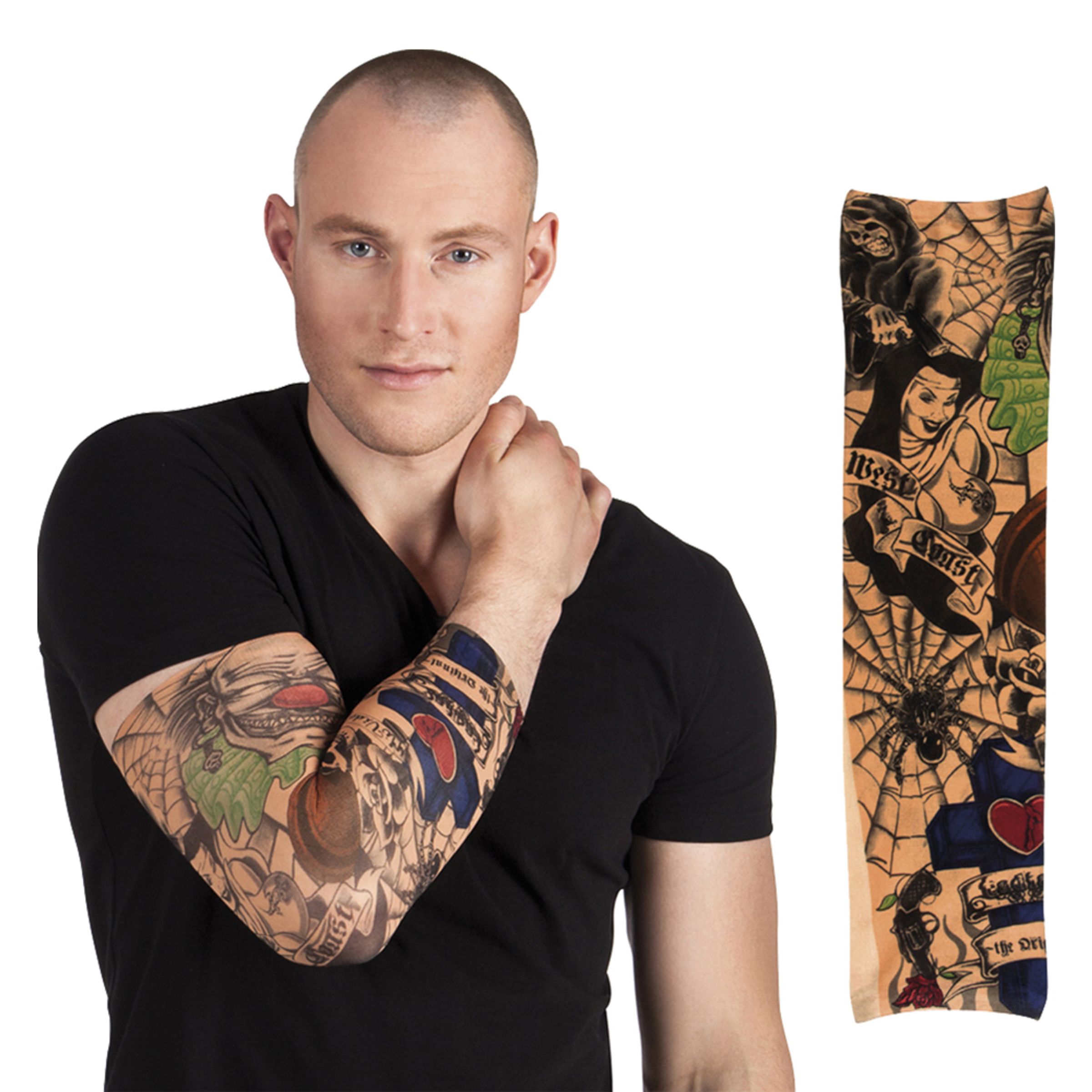 Tatueringsärm west coast adventure är en textilärm i stretchigt material med tatueringsmönster i olika motiv av bl.a. en döskalle, ett spindelnät med en spindel och en pistol. Ett levande konstverk helt enkelt! Det enda du behöver göra är att trä den över din arm och vips så har du en cool arm utan att ha behövt känna minsta lilla smärta.